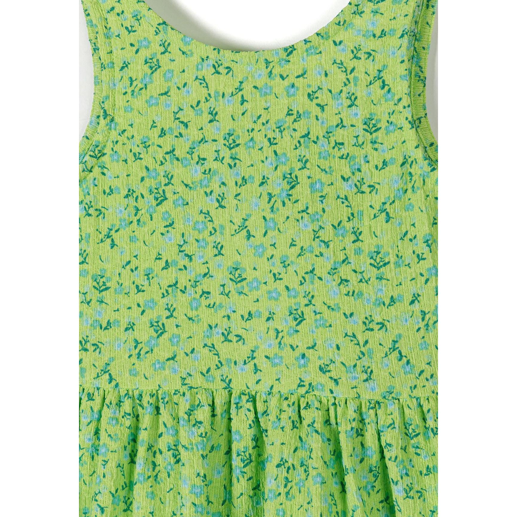 Флорална рокля в изумруден цвят, без ръкави, с многослойна поли и връзка на гърба (3–15 години)