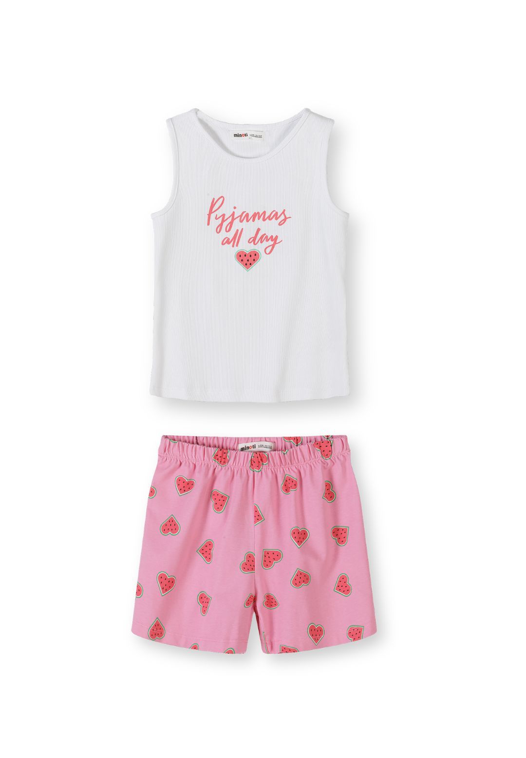 Dívčí 2ks pyžam tílka a kraťasy melounový potisk růžová a bílá - 3-15 let
