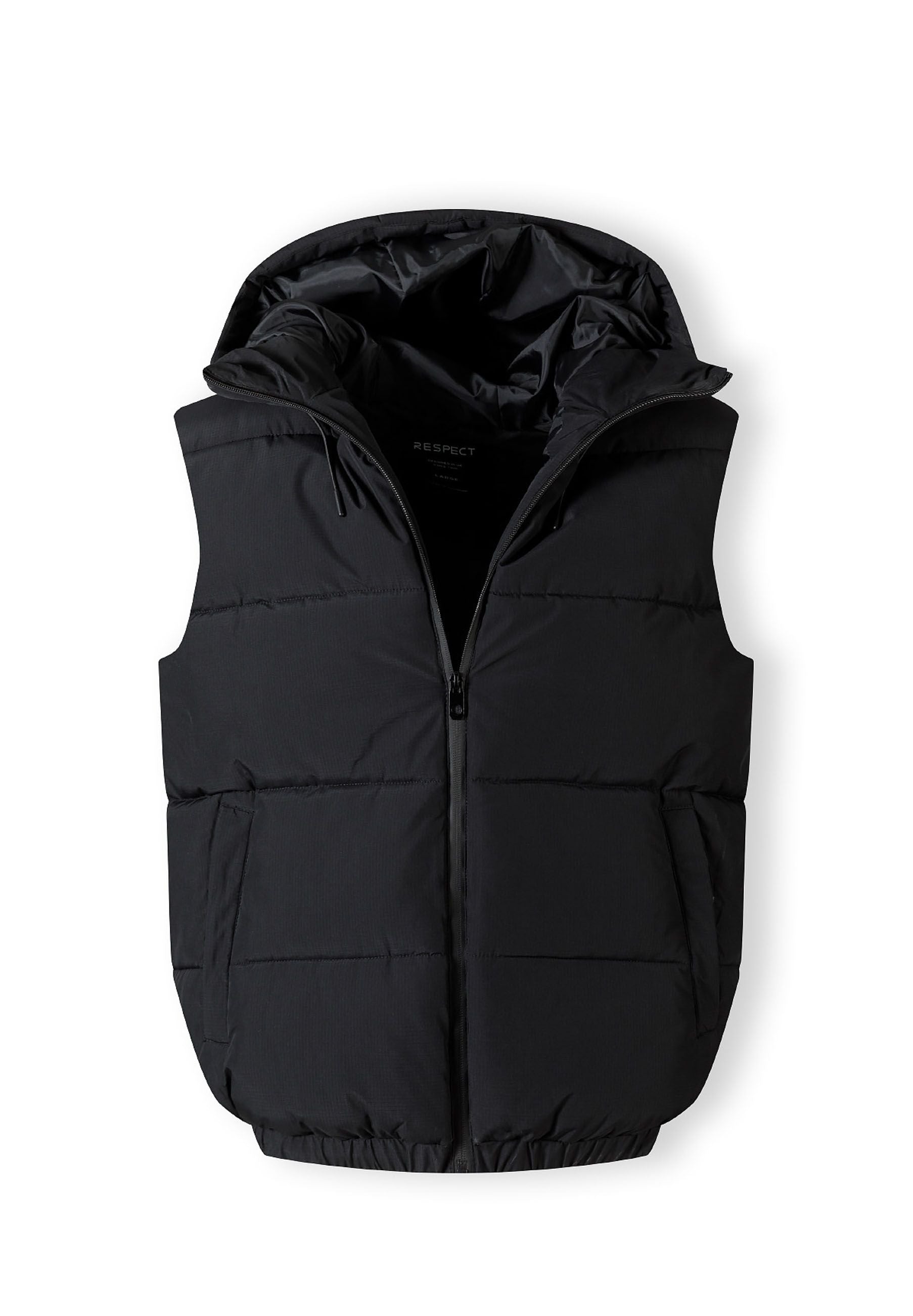 Gepolsterte Ripstop-Weste Schwarz Steppweste mit Kapuze