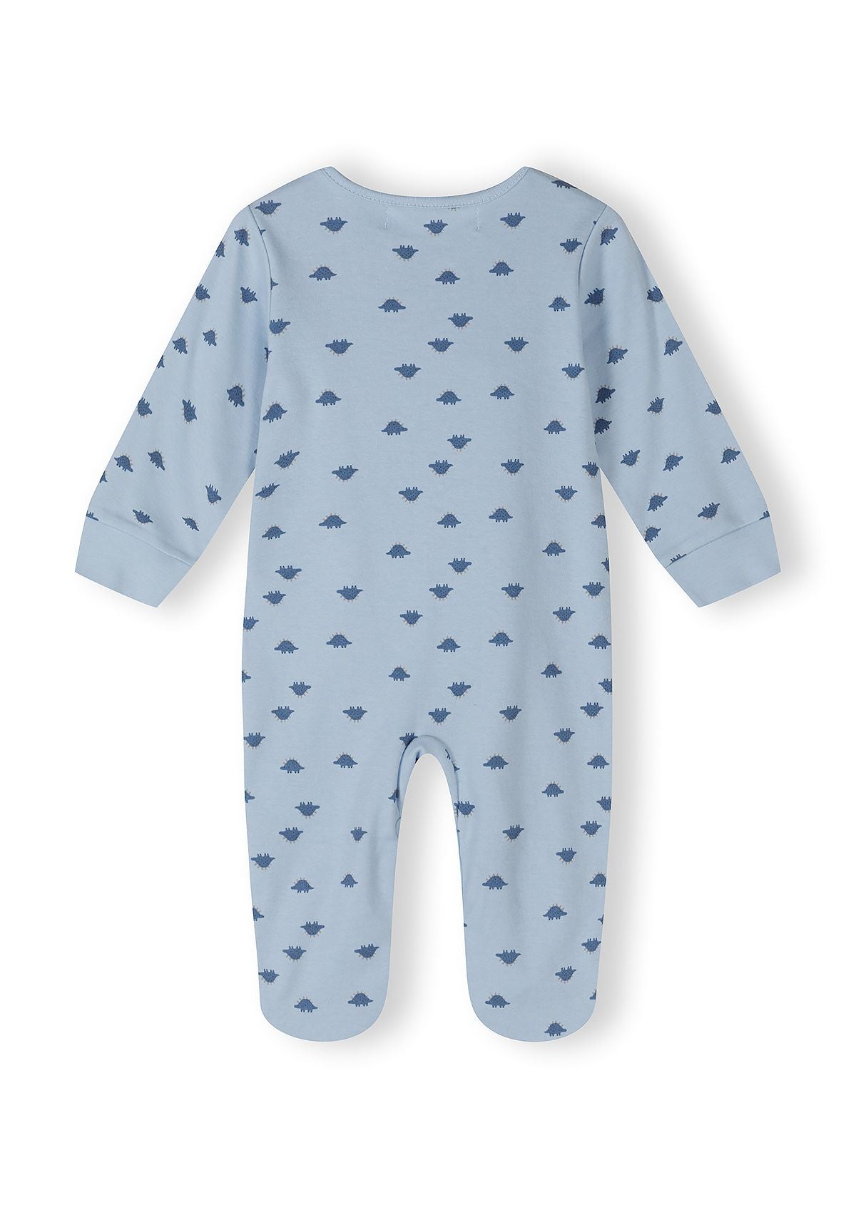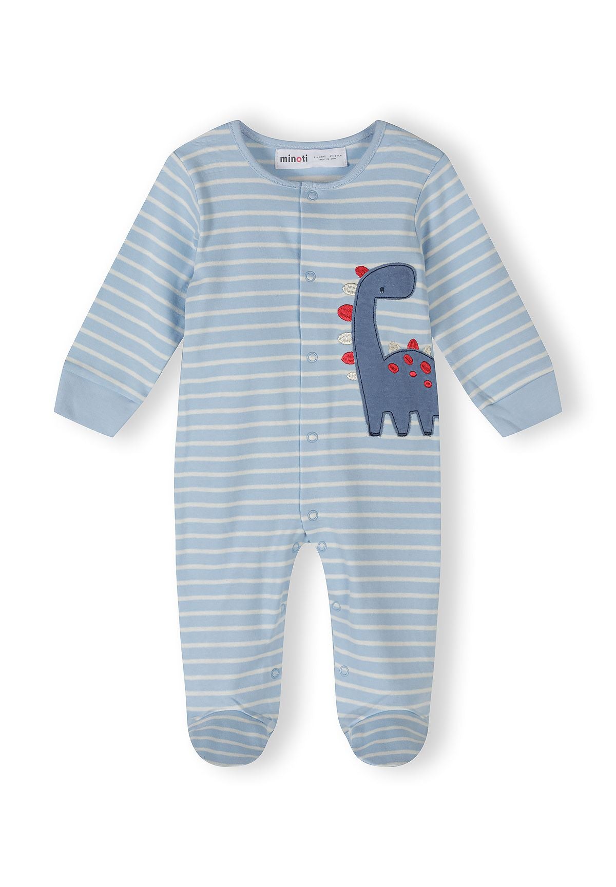 Hergestellt aus atmungsaktivem gestricktem Baumwolljersey, bieten diese Jungen-Dinosaurier-Schlafanzüge sanfte Weichheit und Flexibilität für aktive Säuglinge. Der klassische blau-weiße Dinosaurier-Print verleiht einen verspielten Charakter, während elastische Bündchen und nickelfreie Druckknöpfe ein einfaches Schließen ohne Unbehagen ermöglichen. Die reguläre Passform und die körpernahe Form sorgen für zuverlässigen Sitz, und der strapazierfähige Stoff behält nach wiederholtem Waschen Farbe und Struktur.