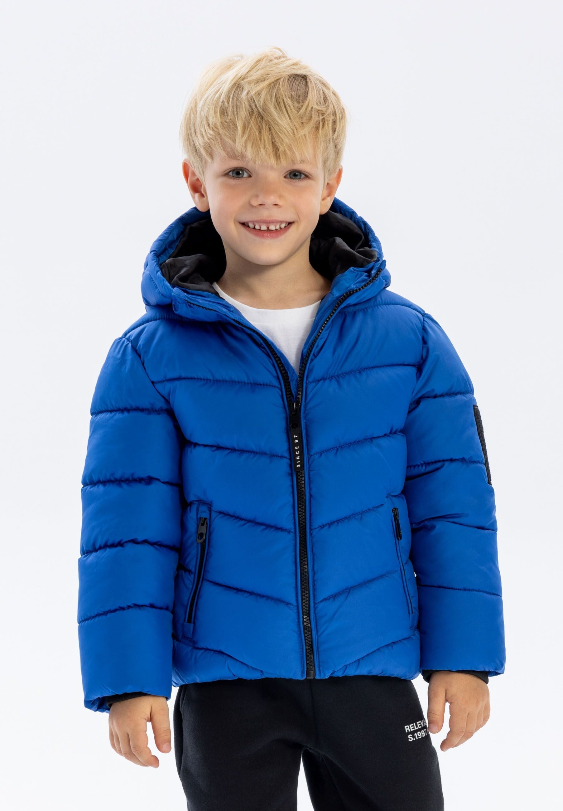 Jungenjacke Kobaltblau Steppwattierte Daunenjacke mit Schwarzen Details