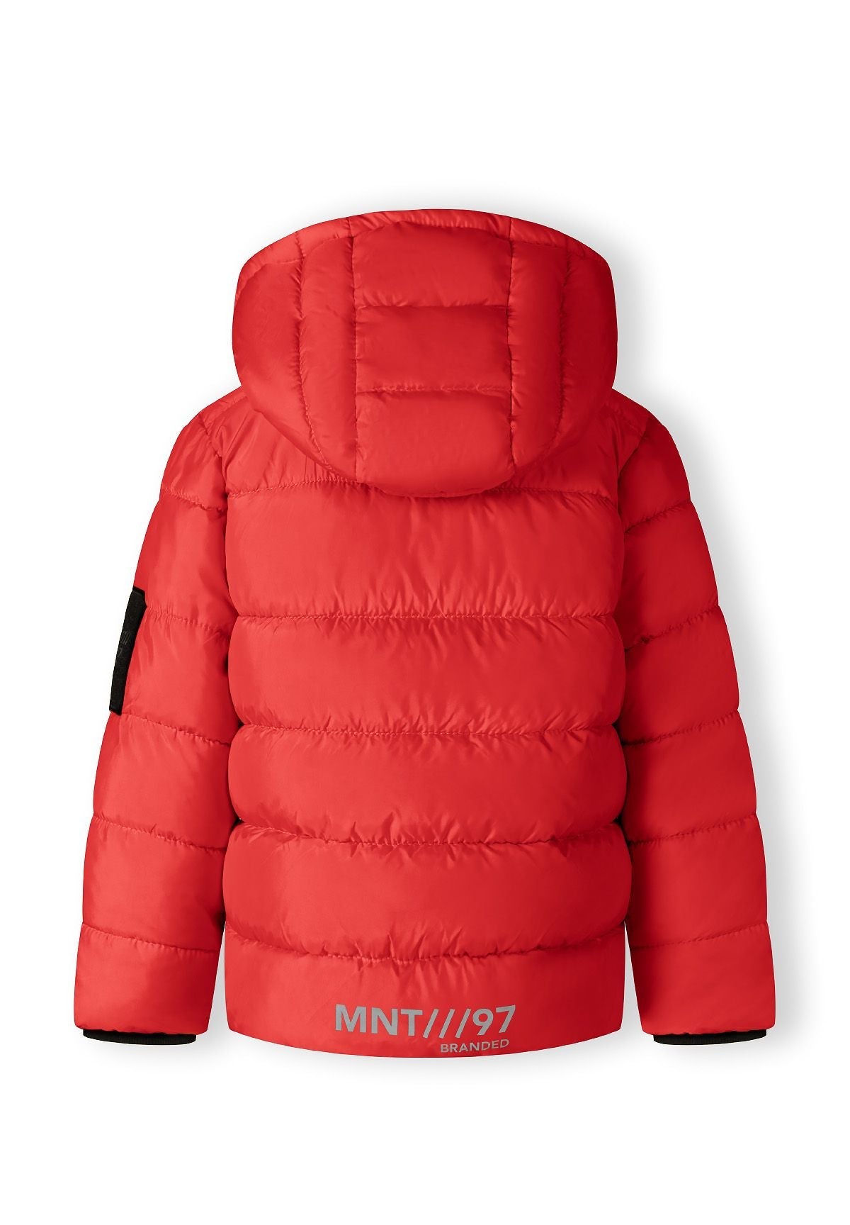 Rote gesteppte Jungen-Steppjacke mit schwarzen Akzenten