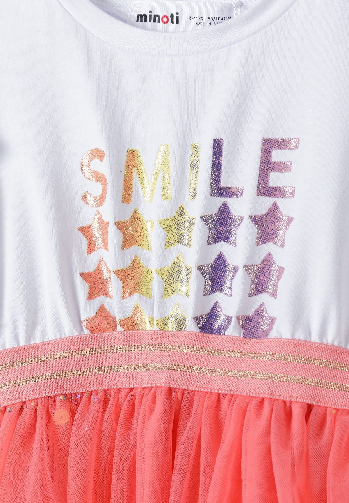 Mädchenkleid Weiß und Koralle mit Rüschchen-Ärmeln und Tüllrock
