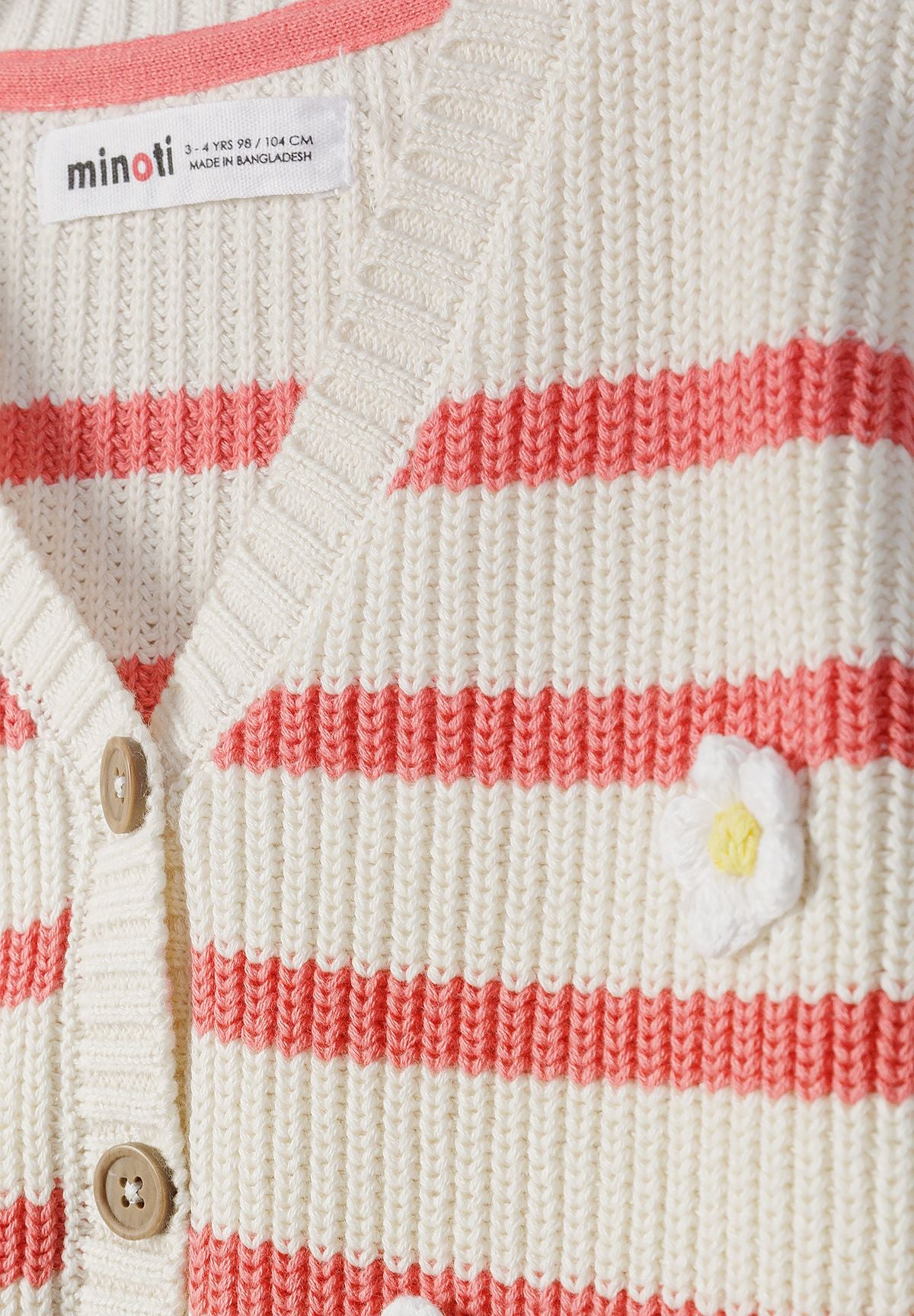 Mädchen gestrickte Strickjacke korallenrot weiß gestreift mit Gänseblümchen-Stickerei 3 Monate bis 7 Jahre