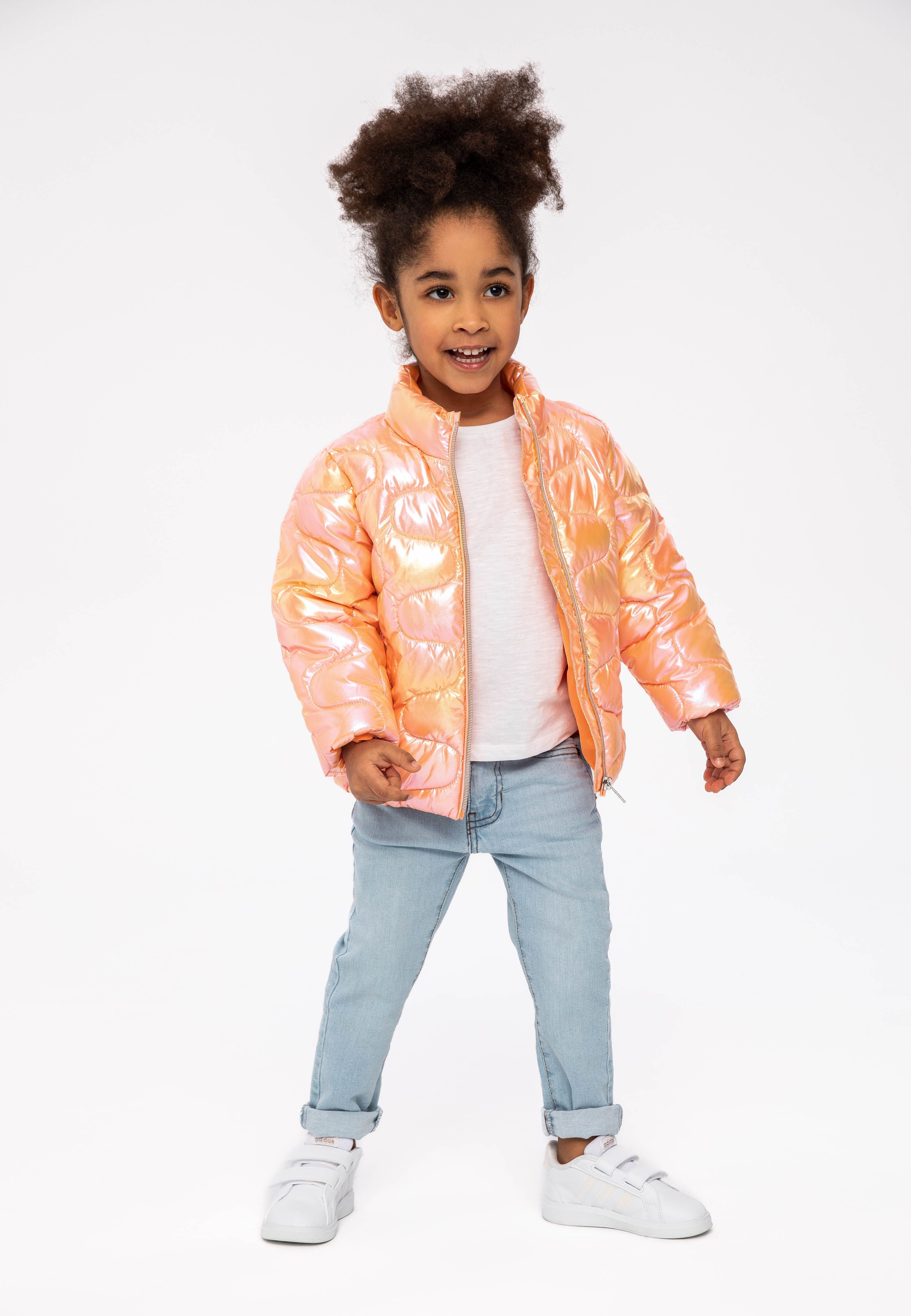 Mädchenjacke Steppjacke mit Stehkragen Korallenrot