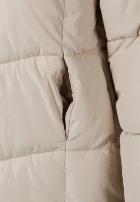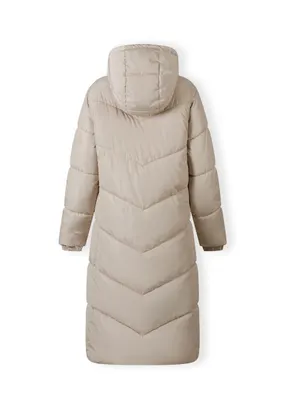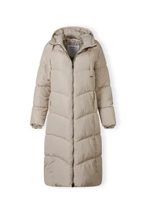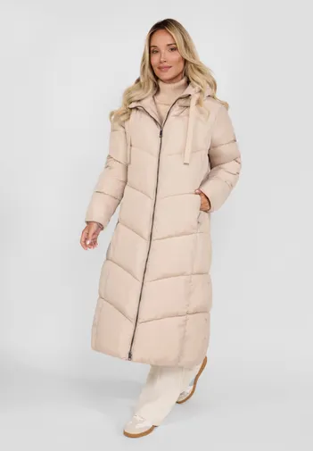 Lange, gesteppte Winterjacke bietet optimalen Schutz an kalten Tagen. Die feste Kapuze mit verstellbarem Band und der hohe Kragen halten angenehm warm. Der durchgehende Kontrastreißverschluss ist ein praktisches und modisches Element. Innen sorgt die Fütterung für wohlige Wärme. Die elastischen Bündchen an den Ärmeln verhindern das Eindringen von Kälte und machen die Jacke besonders komfortabel.