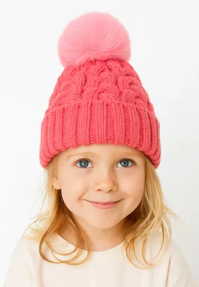 Einfarbige Strickmütze mit schönem Bommel aus Kunstfell. Sie wurde mit Sorgfalt um die Details gefertigt, sichert Tragekomfort und Wärme- perfekte Mütze für kühlere Tage.