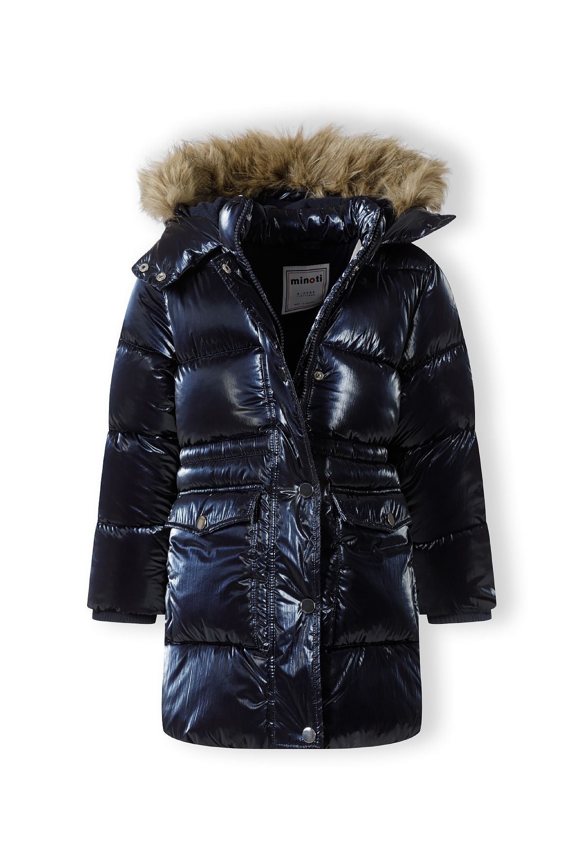 Wattierte jacke mit kapuze marineblau mit fellbesetztem abschluss 2-14 j
