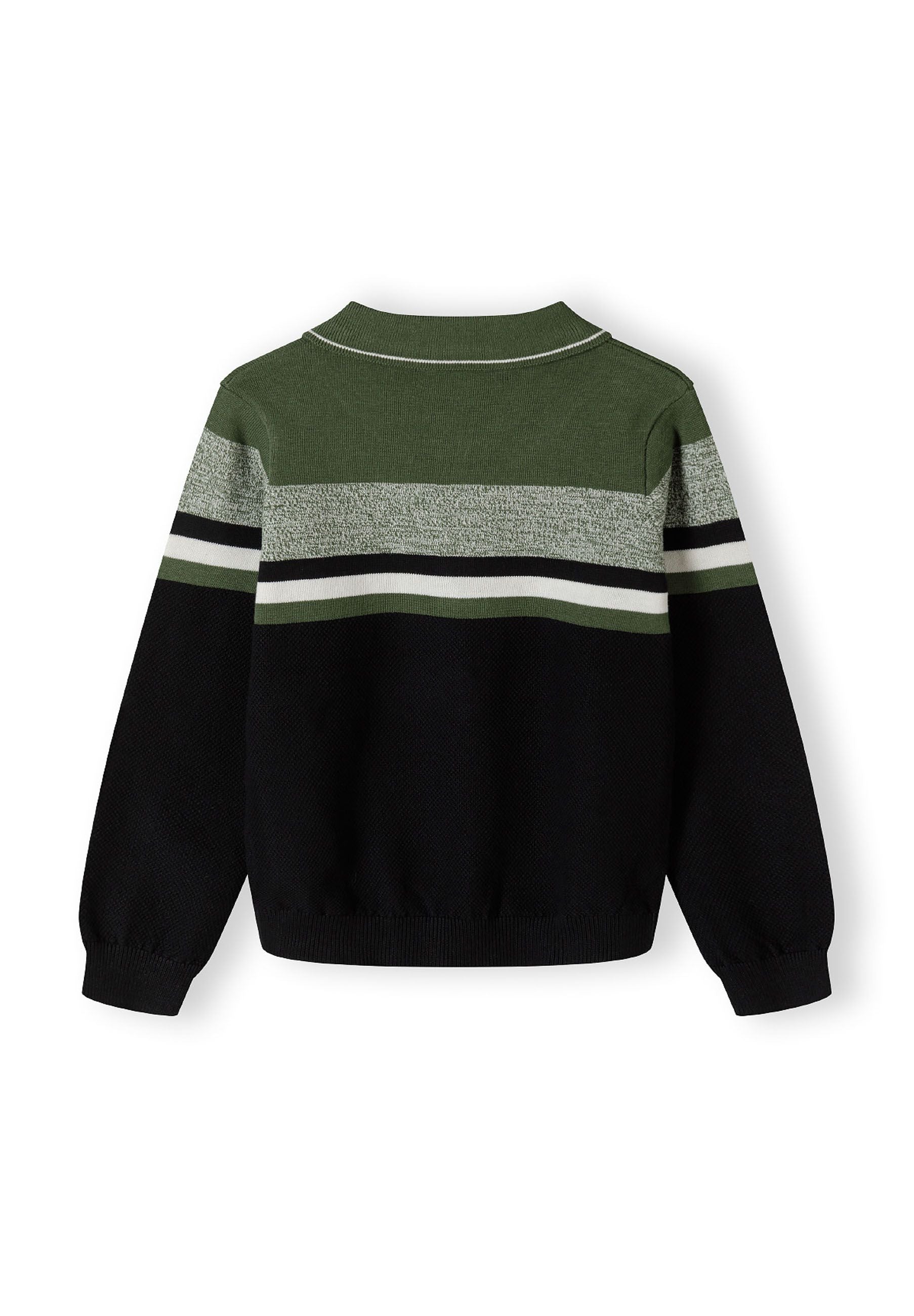 Jungen Pullover khaki Baumwolle Streifen Viertel-Reißverschluss Polokragen 2-14 Jahre
