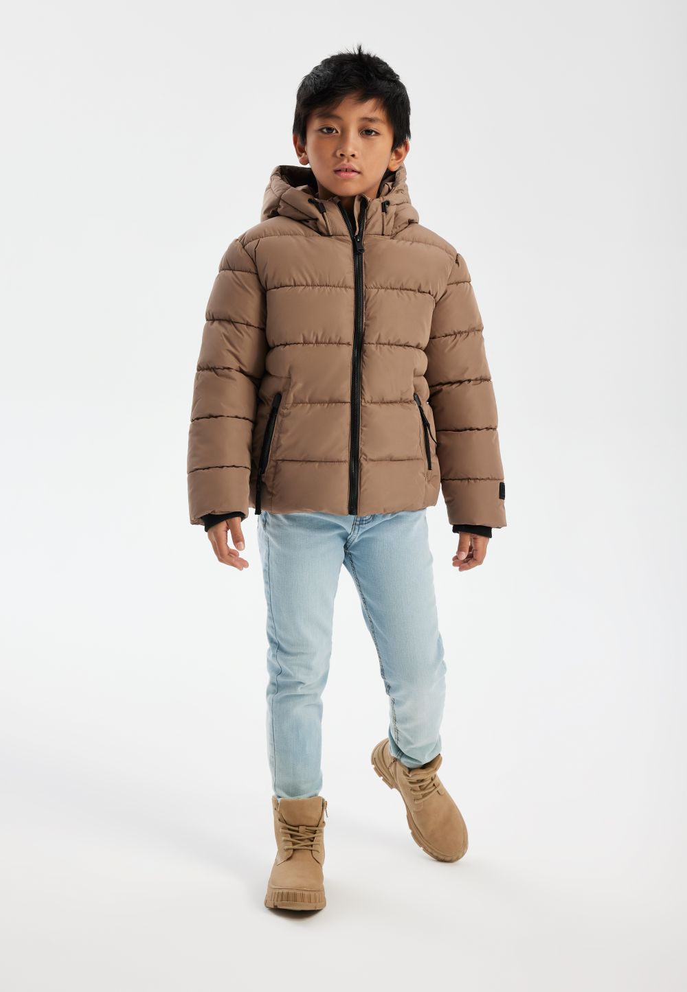 Jungen Steppjacke mit Kordelzug 4y–14y beige
