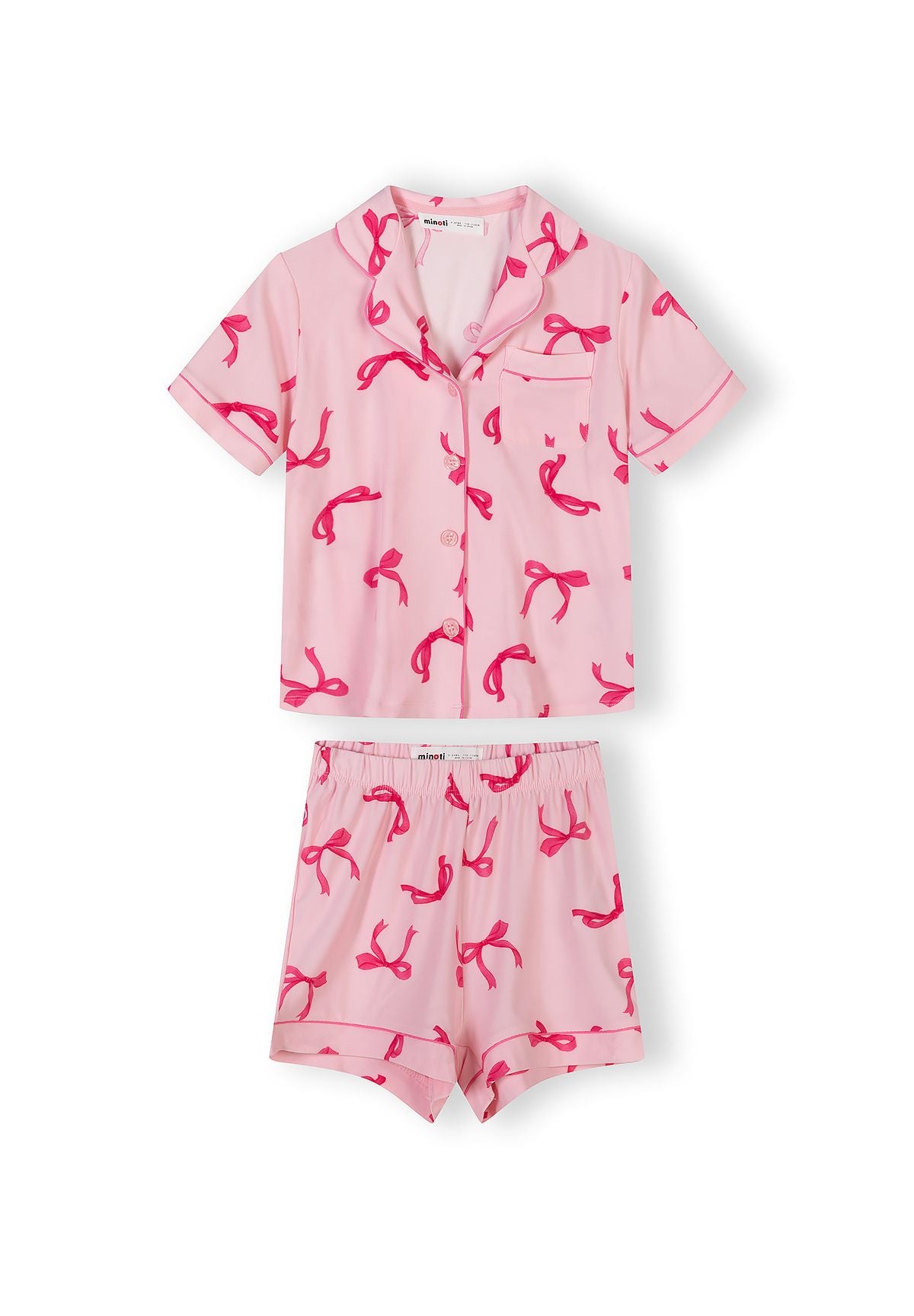 Mädchen Kurzarm-Pyjama-Set mit rosa Schleifendruck 3-15 Jahre