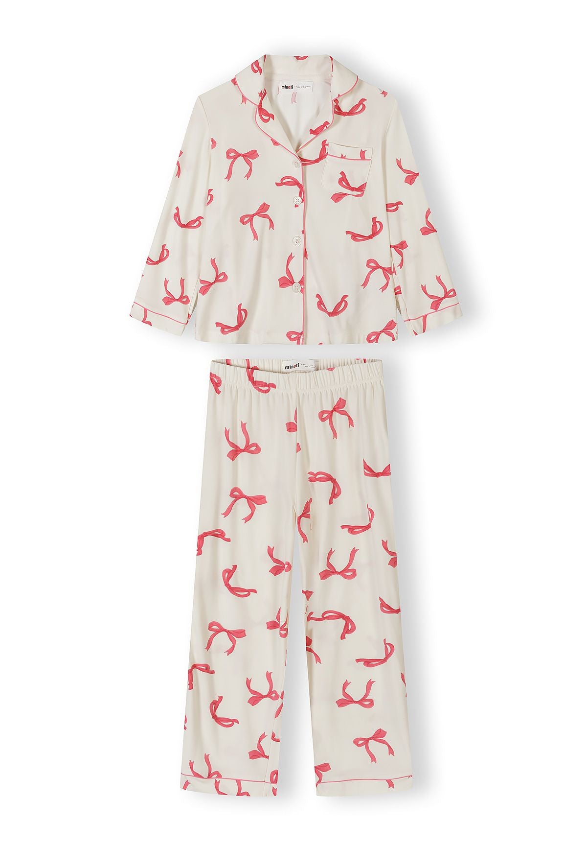 Mädchen Schlafanzug-Set mit langem Arm, weiß mit Schleifendruck, Alter 3 bis 15 Jahre