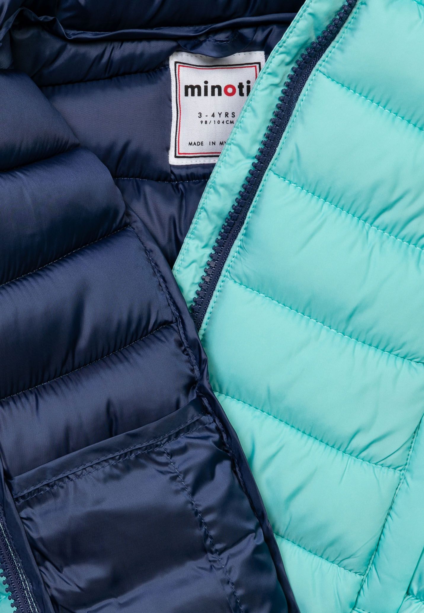 Das für Mädchen entworfene Gilet ist in einem mintfarbenen Ton gehalten, der sich ideal zum Schichten in der Saison eignet. Es verfügt über einen gemütlichen Stehkragen, der besonders an kühlen Tagen zusätzliche Wärme bietet. Das Innenfutter ist in einer Kontrastfarbe gehalten, die das Gesamtbild ergänzt, und die Arm- und Saumkanten sind mit einer eingefassten Umrandung versehen, die für einen sauberen Abschluss sorgt. Eine weiche Wattierung sorgt für eine verbesserte Wärmeisolierung und erhöht den Tragekomfort. Das ärmellose Design ermöglicht vielseitiges Kombinieren über Langarmshirts oder Pullovern. Ein durchgehender Frontreißverschluss mit Kontrastbesatz bietet einen praktischen Verschluss und einfache Handhabung. Die Verarbeitung des Kleidungsstücks ist durchdacht und legt den Fokus auf Wärme und Tragekomfort, auch wenn die genaue Materialzusammensetzung nicht angegeben ist, wodurch Funktionalität und Stil für saisonale Oberbekleidung betont werden.