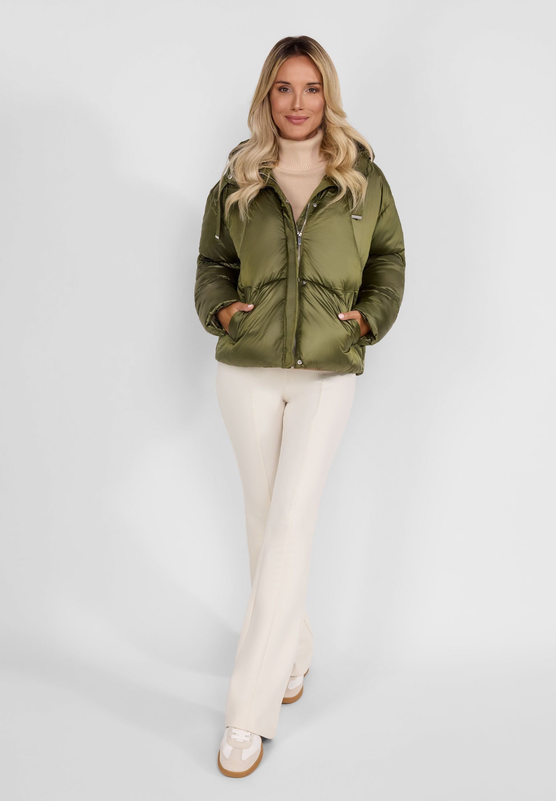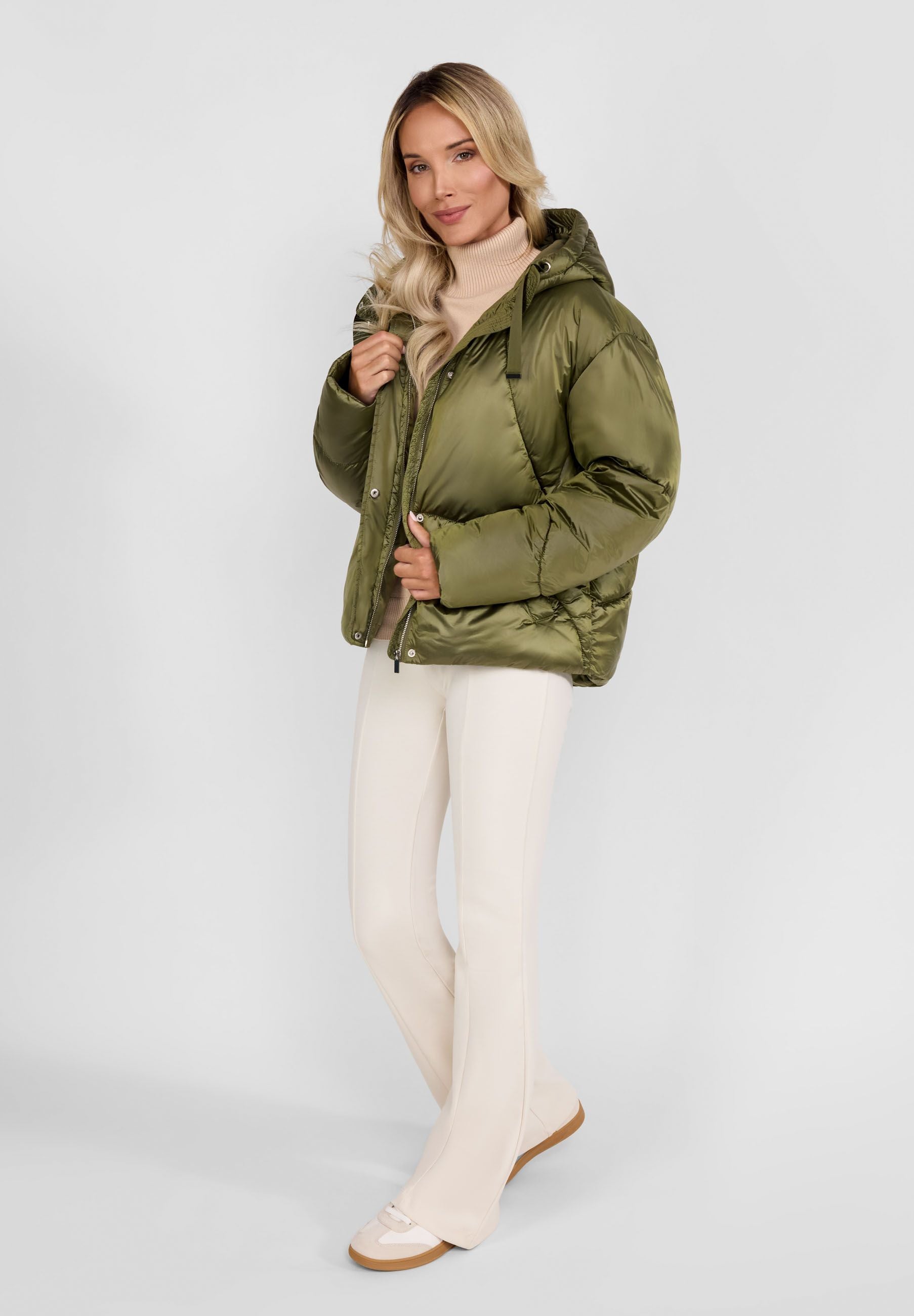 Kurze Glanzjacke mit Steppung und Kapuze XS-XXL