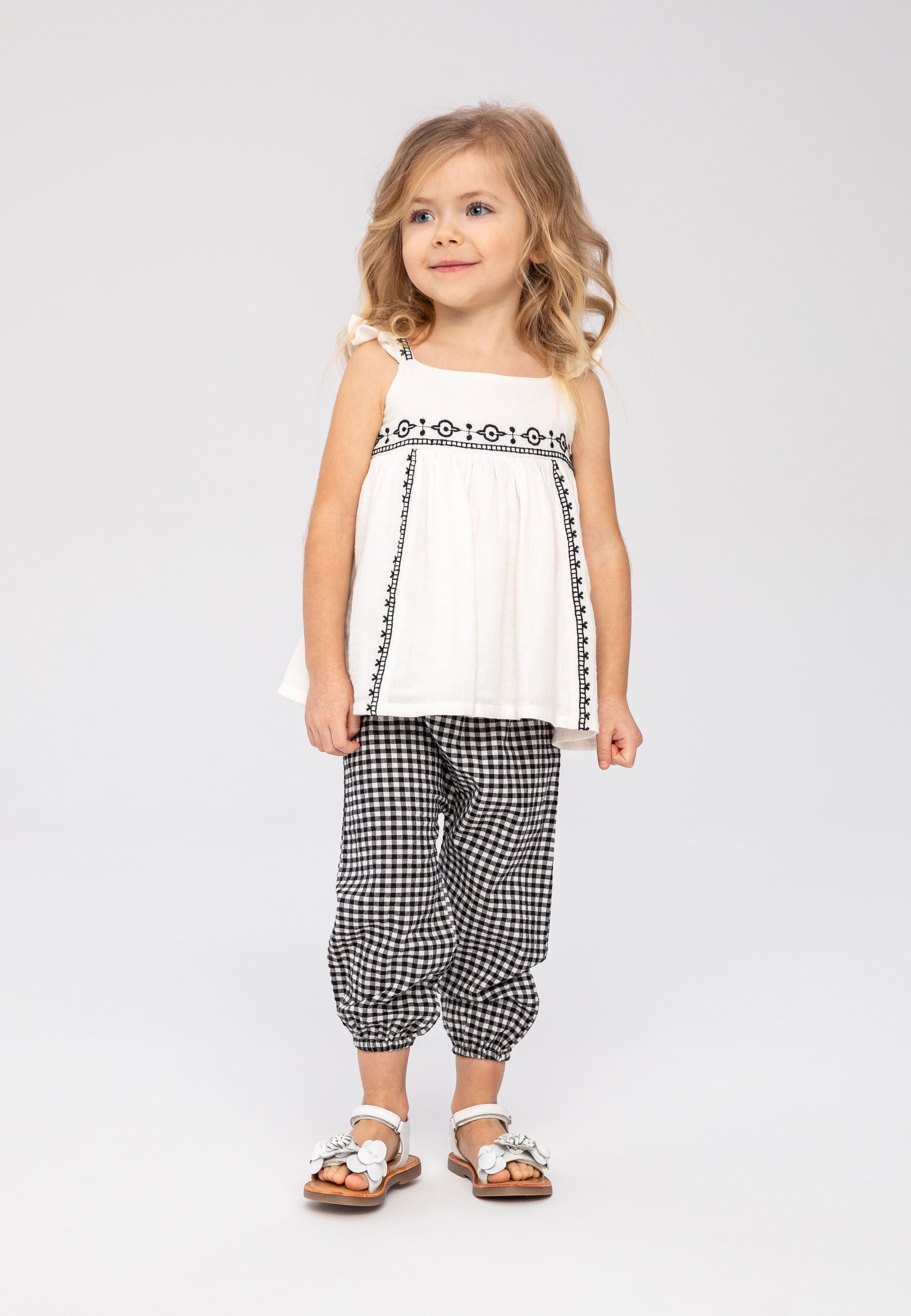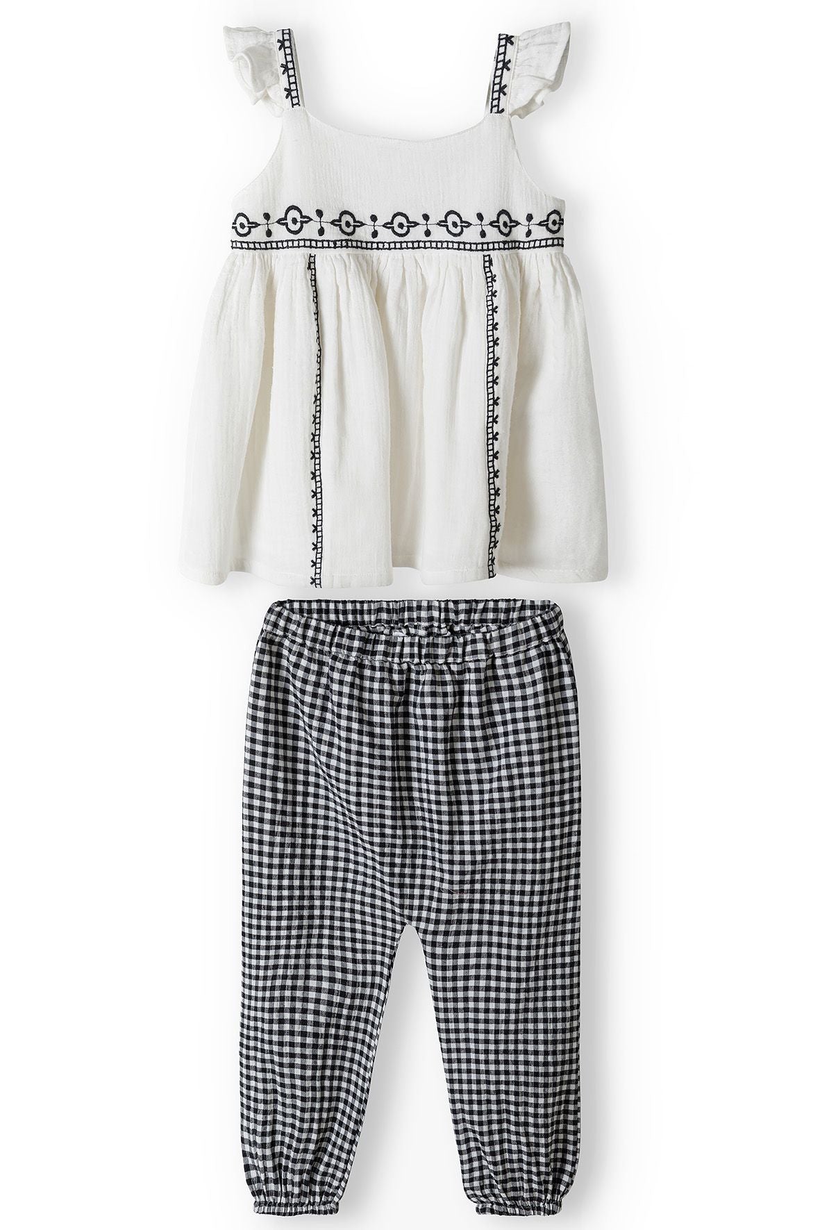 Set aus bestickter Bluse und karierter Hose 3-12 m