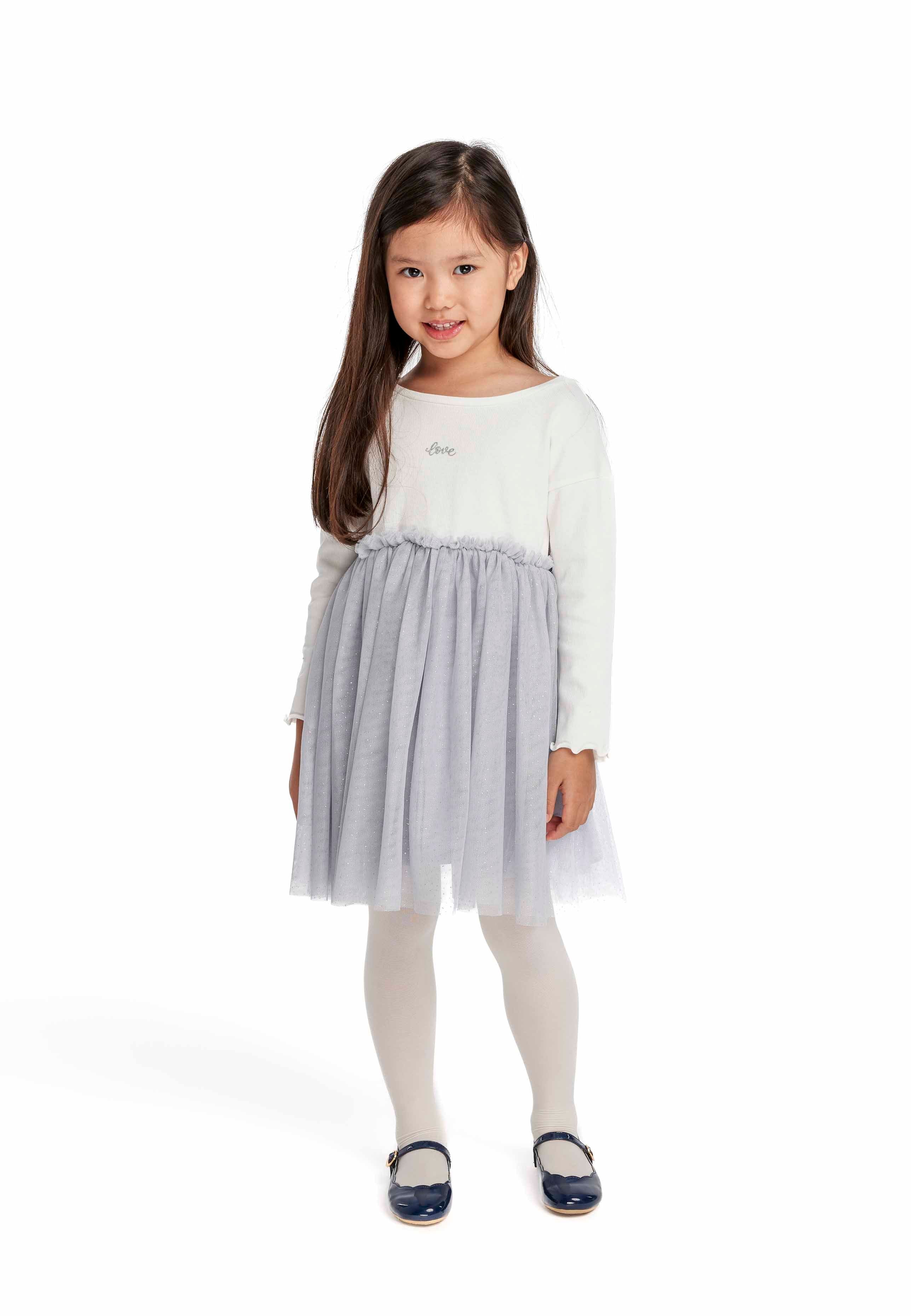 Kleid aus Baumwolle und Tüll mit Glitzer überzogen 3-8 y