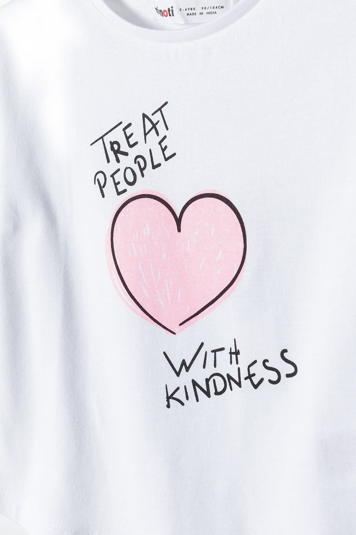 Tshirt mit kurzen ärmeln und herzdruck "treat people with kindness" 3-8 j