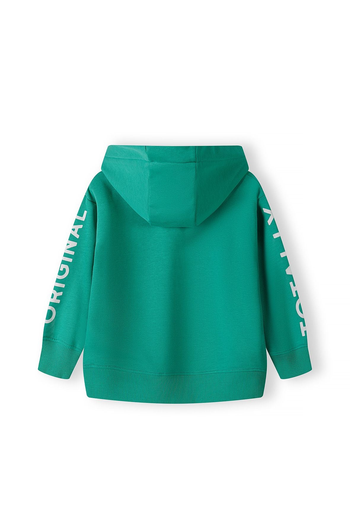A boys fleece hoodie designed for casual wear during spring and summer. the dark green garment features a relaxed fit offering unrestricted movement and everyday comfort. it includes a chest pocket on the front for convenient small item storage. the soft fleece material provides warmth while maintaining breathability. the hood is equipped with eyelets to increase airflow and comfort. elasticated hems and cuffs ensure a secure fit and flexibility. decorative sleeve prints add a subtle design element, complemented by a small badge on the hem. the hoodie is constructed for practical use with simple, durable details suitable for boys' casual wardrobes.