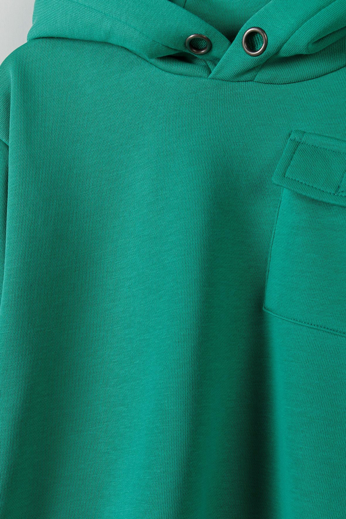 Boys fleece hoodie with chest pocket dark green 2-14y
