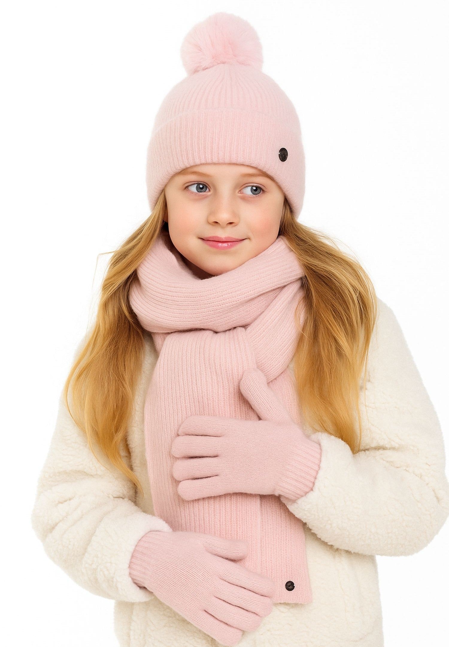 Girls 3 piece winter set hat scarf gloves pink 2-14y