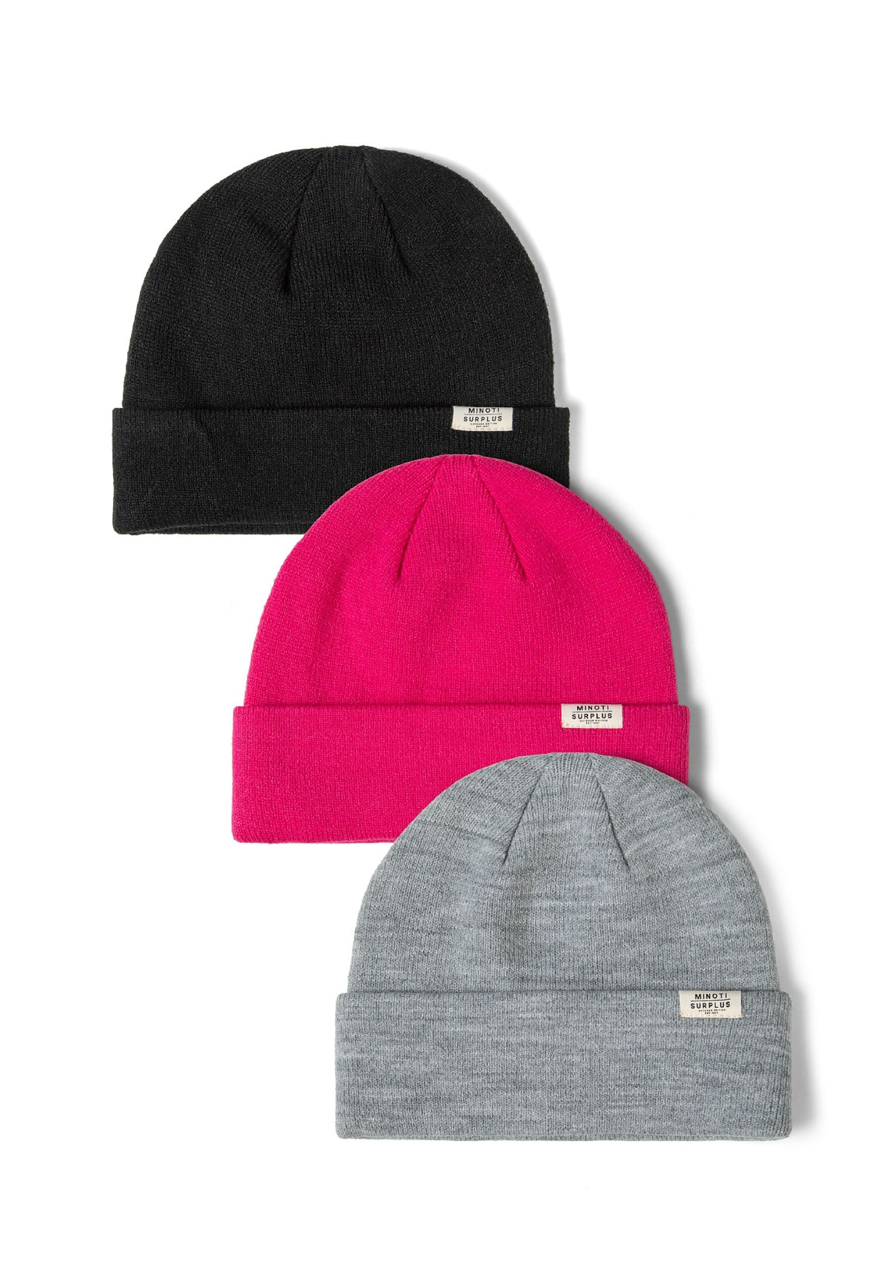 Boys and girls 3 pack ribbed beanie hats fold-up cuff black 2-14y