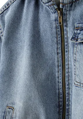 This hooded jacket is crafted from classic denim for a structured, casual look. It features a front zip closure, fixed hood, and ribbed finishes at the cuffs and hem for comfortable wear. The chest patch pocket provides simple styling, while two side welt pockets offer functionality without bulk. A versatile jacket perfect for layering across seasons, combining practicality and timeless design in one essential piece.