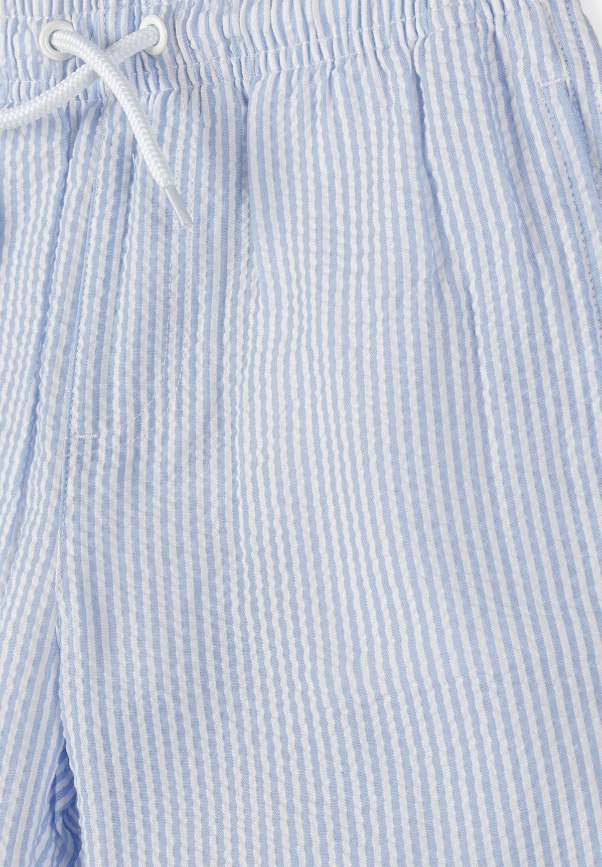 Made from 100% polyester, these boys blue and turquoise shorts are lightweight and dry quickly to keep young swimmers comfortable during water activities. With an attractive striped pattern in blue and turquoise, they are durable and easy to care for, retaining their color and shape after machine washing.