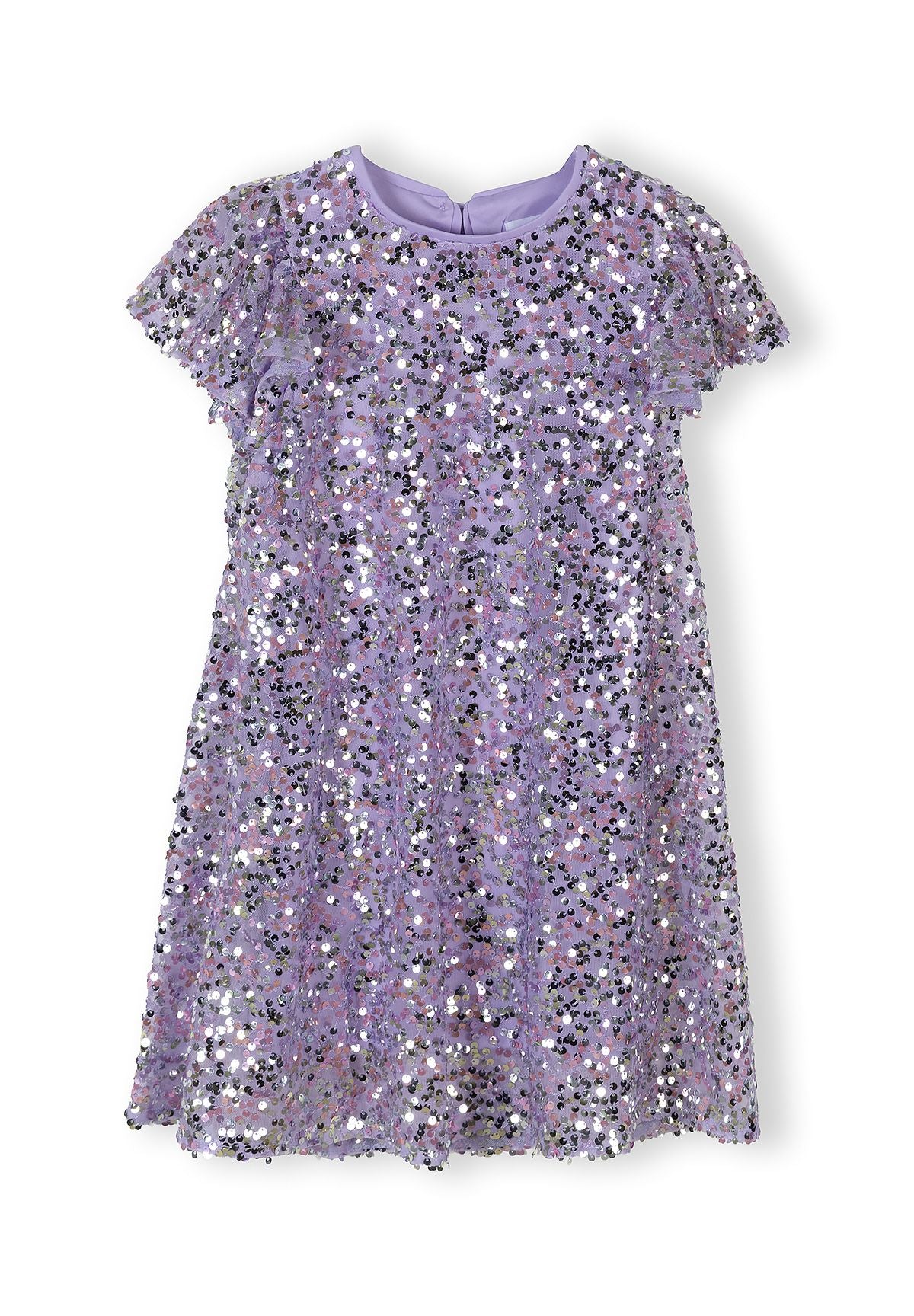 This girls a-line dress combines style with comfort, decorated with a striking multicolour sequin pattern that adds vibrant sparkle suitable for festive occasions. Perfect for celebrations and parties, designed for girls aged 3 to 15 years. The softly flared short sleeves contribute to an elegant shape enhancing the overall refined look, while the smooth, fully lined interior ensures comfortable wear preserving the bright colours and silhouette.