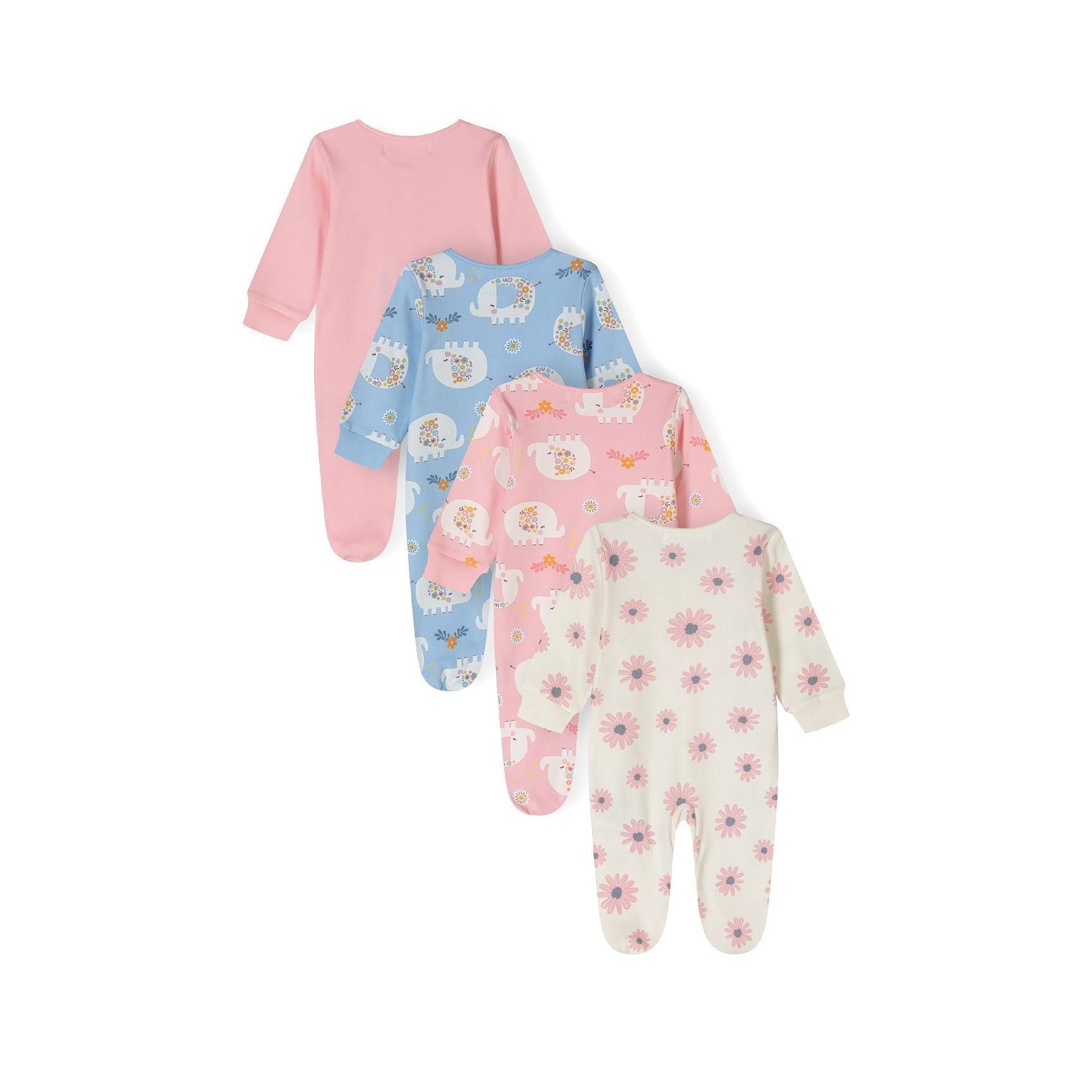 Este set de 4 pijamas de manga larga para niñas en rosa claro ofrece calidez y comodidad de pies a cabeza. Perfecto para bebés niñas de 0 a 24 meses, estos pijamas acogedores son ideales para la hora de dormir, la siesta y el confort durante toda la noche.