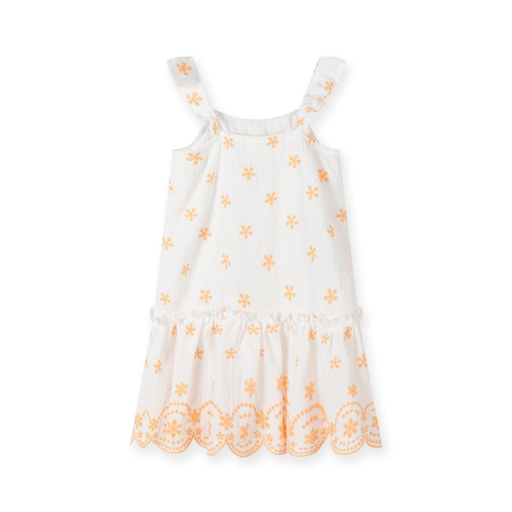 Vestido para niña blanco de muselina de algodón con tirantes bordados 9 meses-8 años