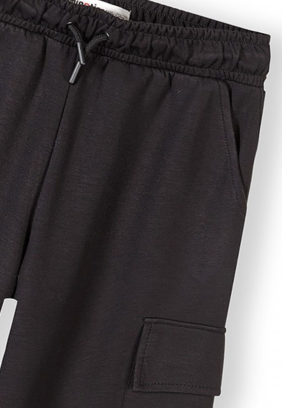 Girls wide leg joggers black with combat pockets elasticated waist 7-15 years