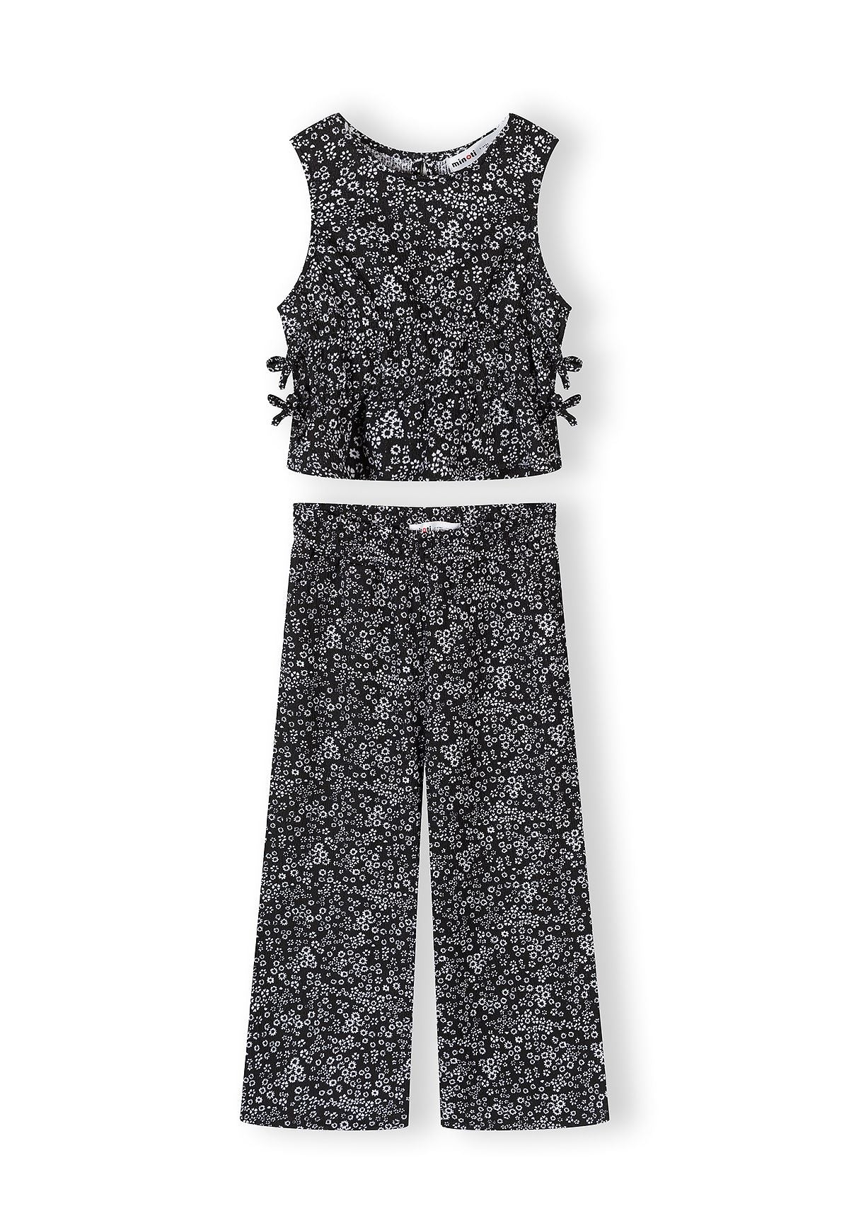 Girls jersey set floral print black pullover and wide leg trousers 3-15 years