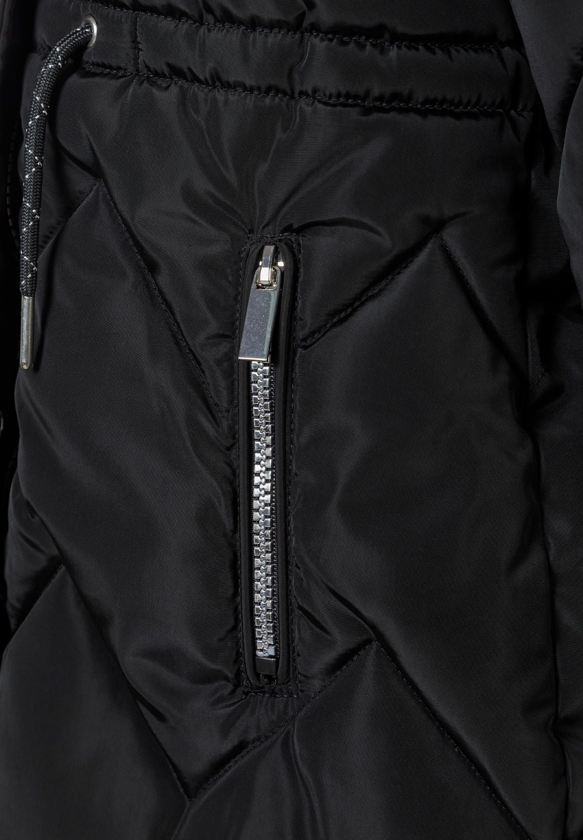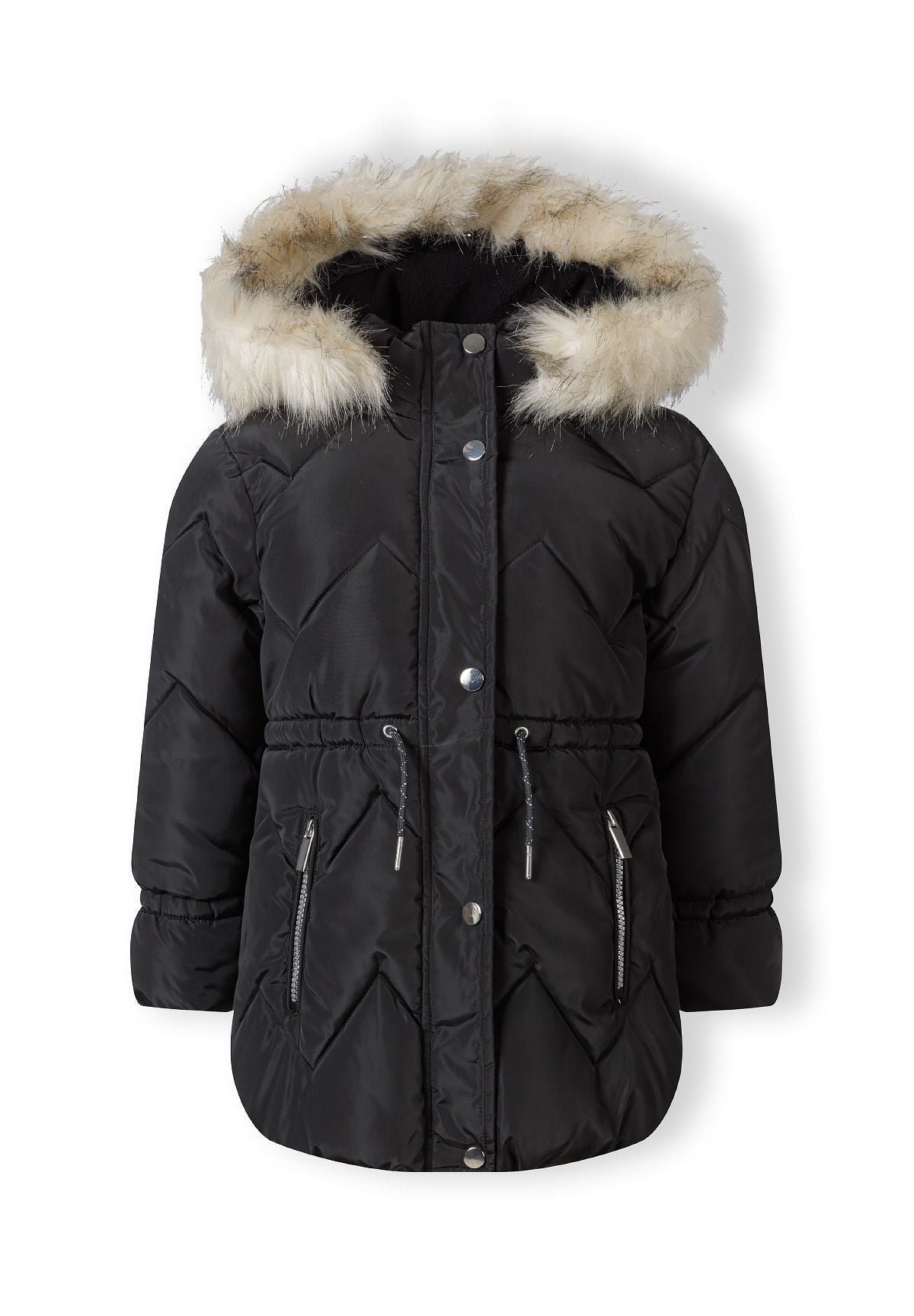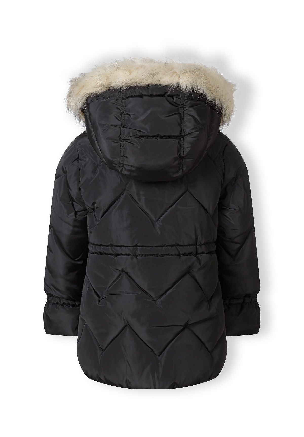 Veste d'hiver matelassée noire pour filles avec capuche en fourrure