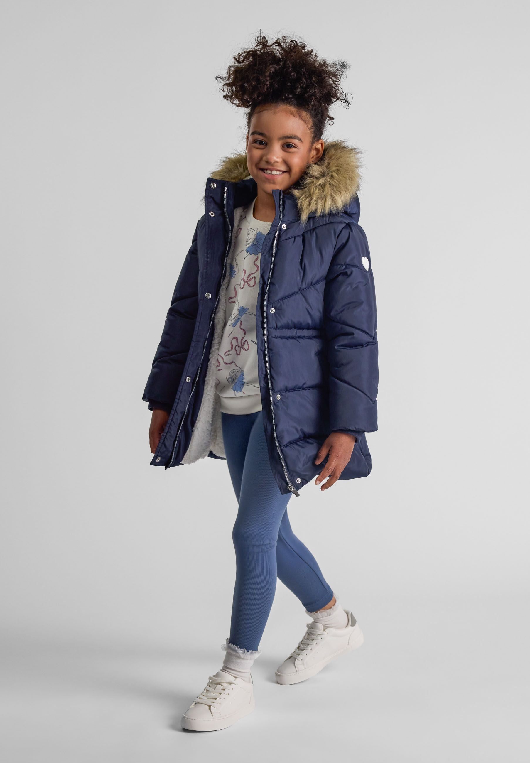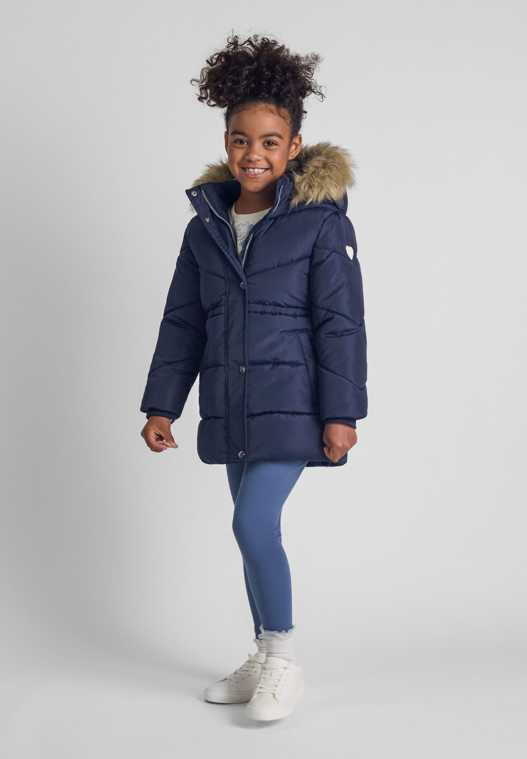 Manteau d'hiver pour filles avec capuche matelassée marine 2-14 ans