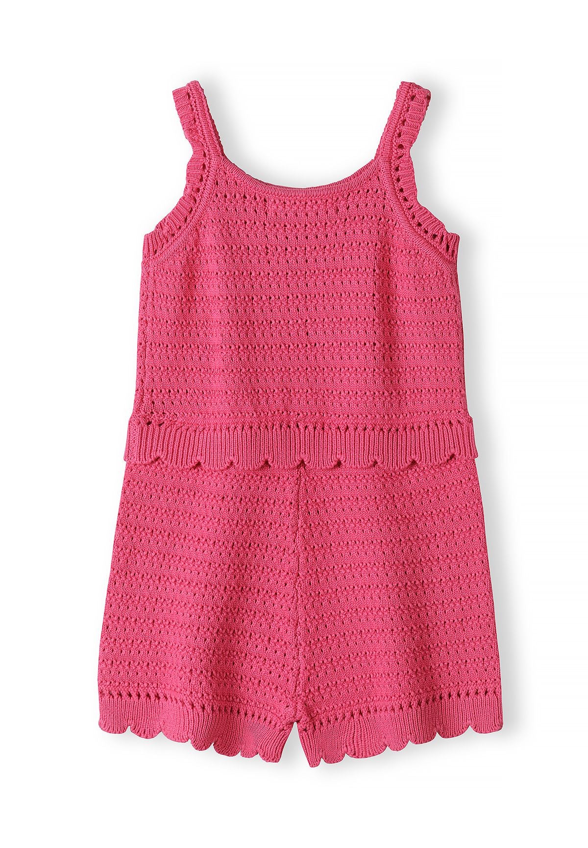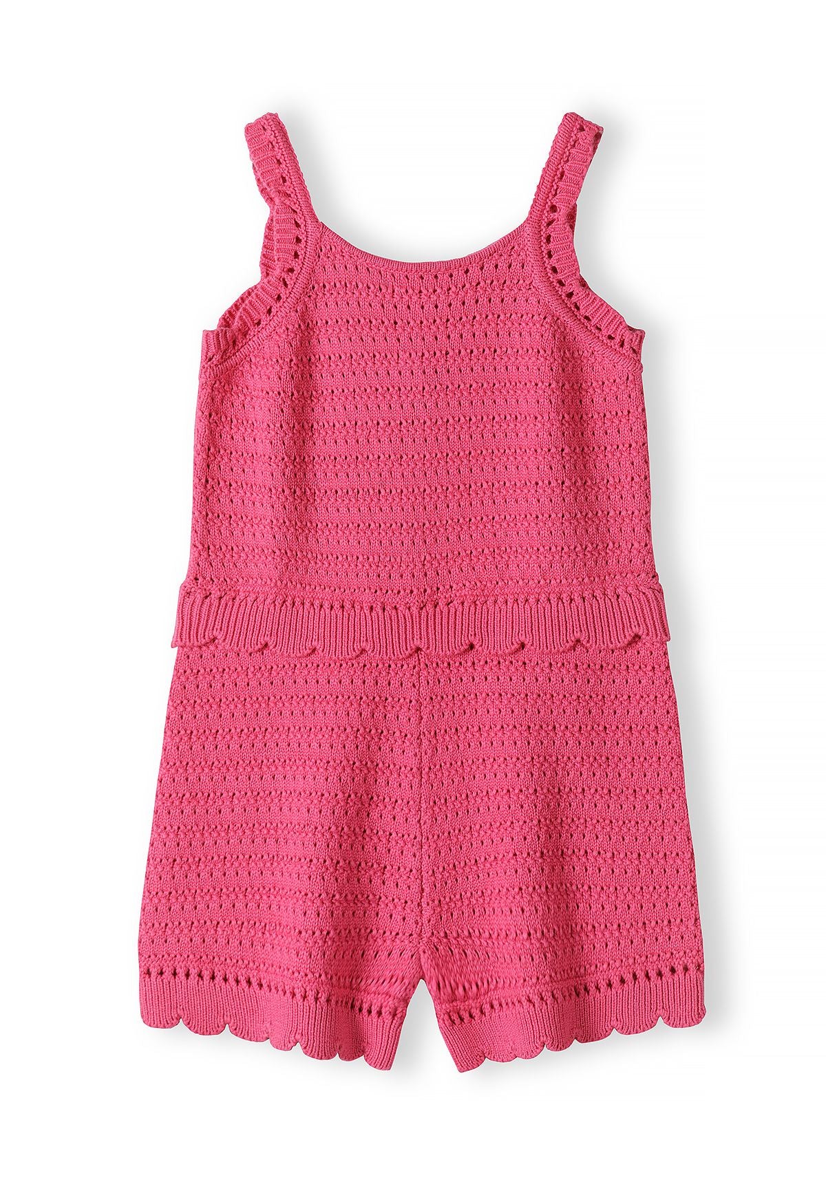 Girls Crochet Jumpsuit Pink Adjustable Straps Scalloped Edges 3y-15y