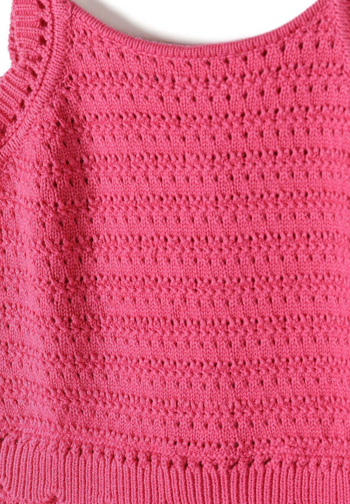 - Intricate crochet pattern in classic pink for a feminine, stylish look