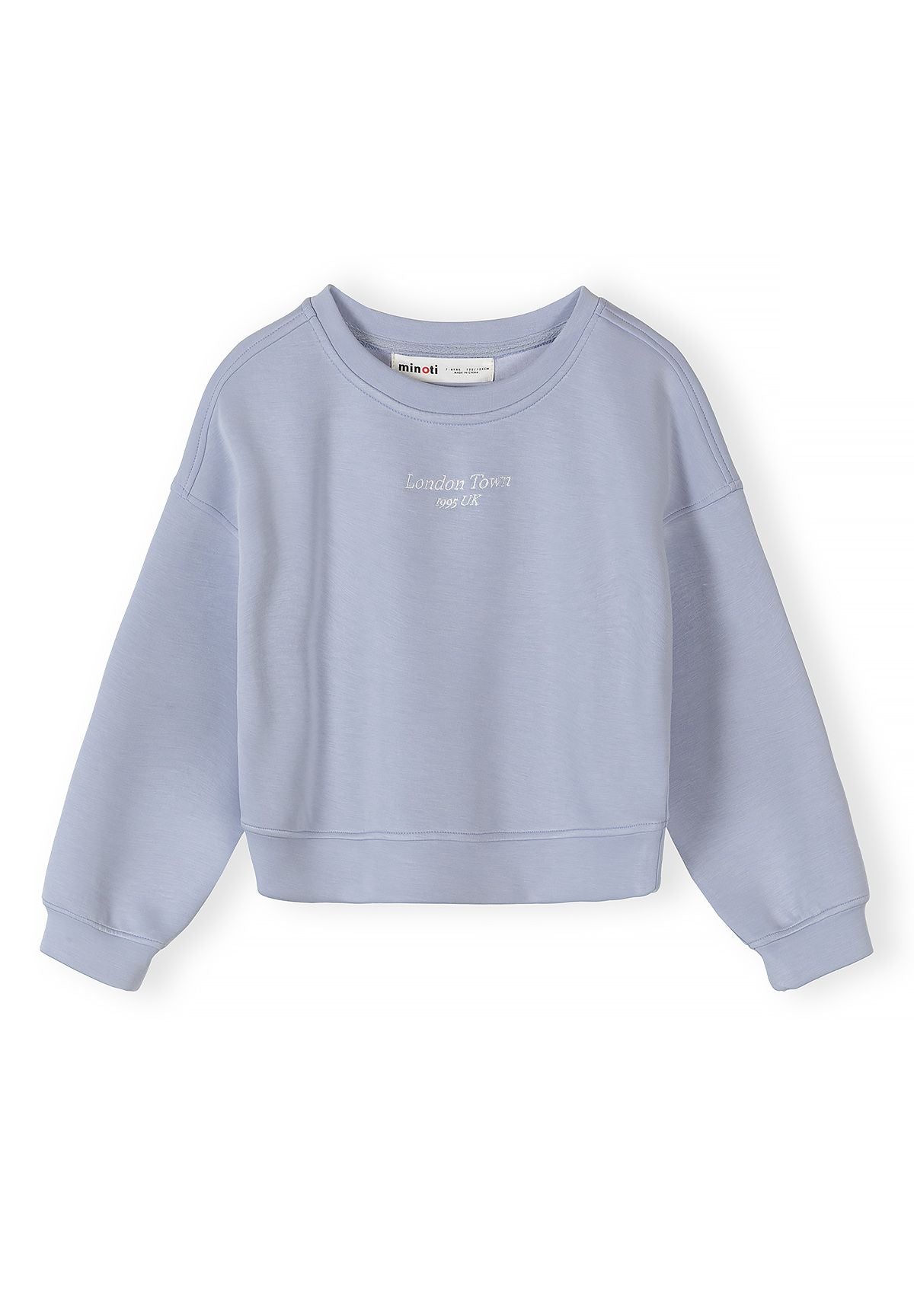 Crafted from viscose blend, this girls blue sweatshirt ensures comfort, durability, and a refined appearance. The delicate embroidered detail positioned centrally on the chest adds understated elegance without detracting from the sweatshirt's clean, simplistic design. Long sleeves with fitted ribbed cuffs and a ribbed crew neck secure a neat and polished fit. The straight cut complemented by a ribbed hemline ensures the garment retains its shape while delivering a relaxed and comfortable fit, making it an excellent layering piece.