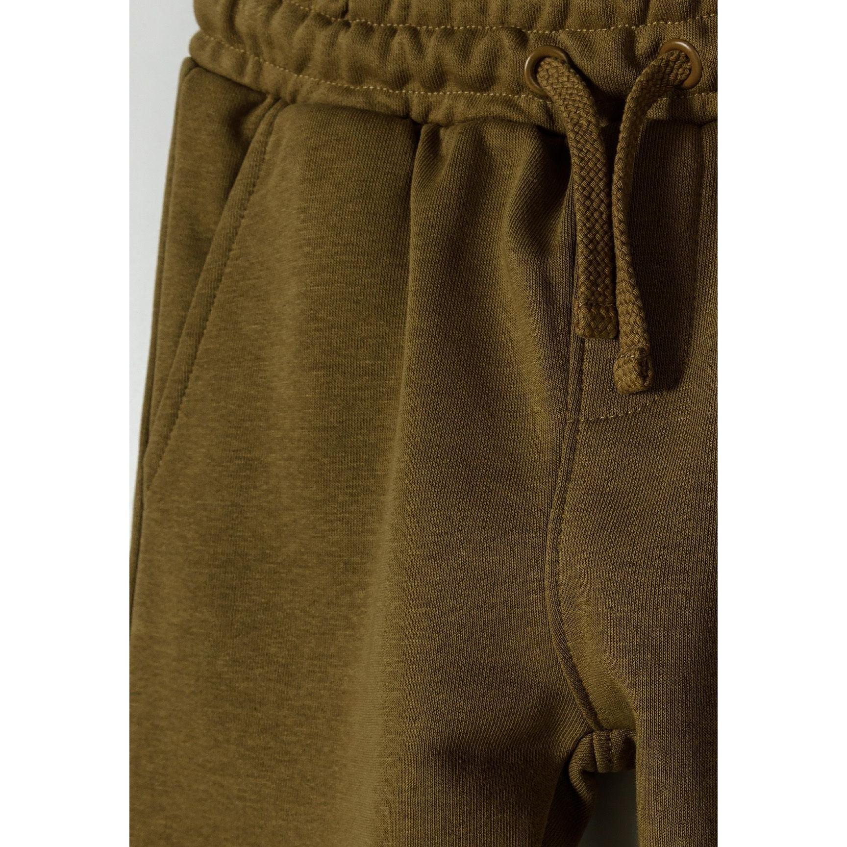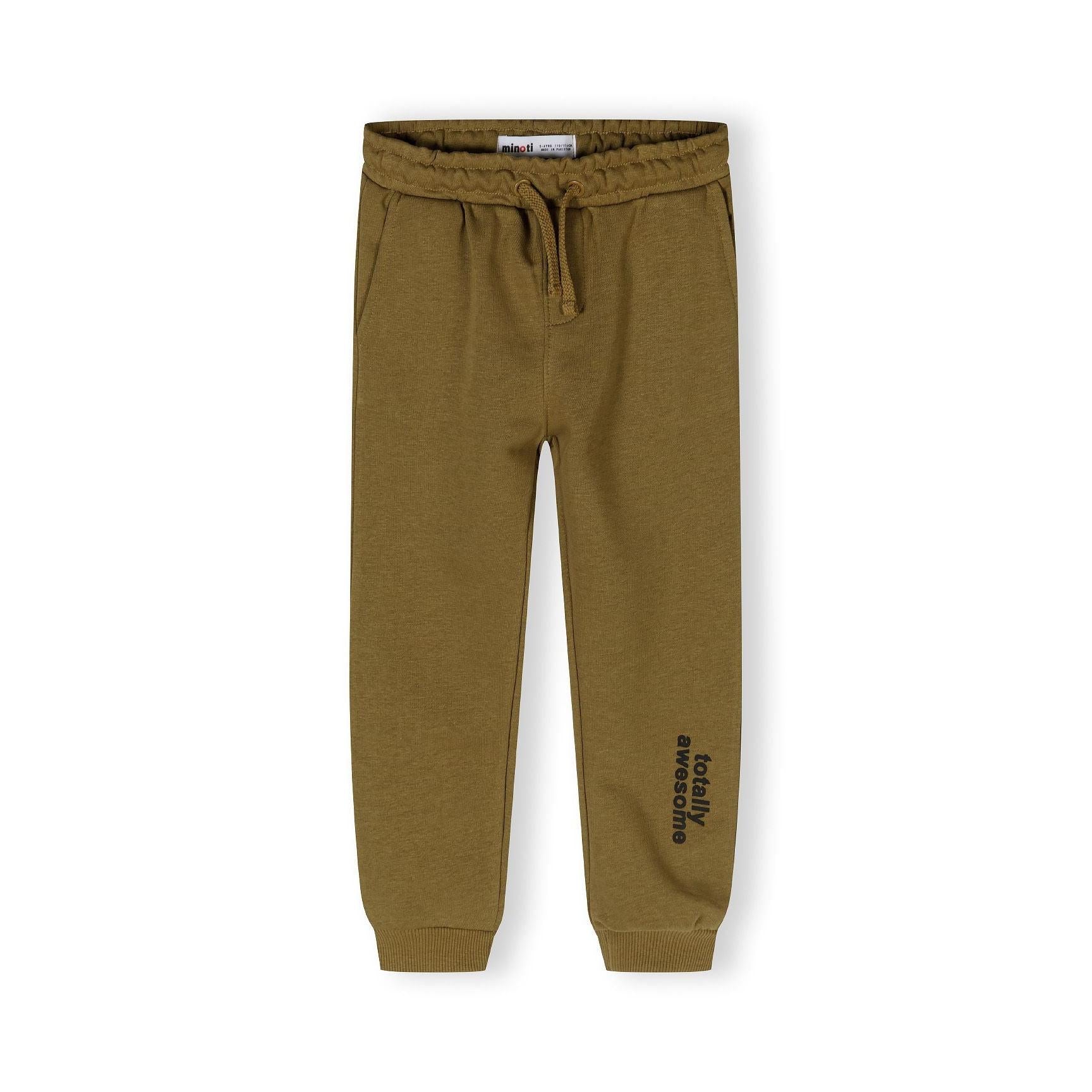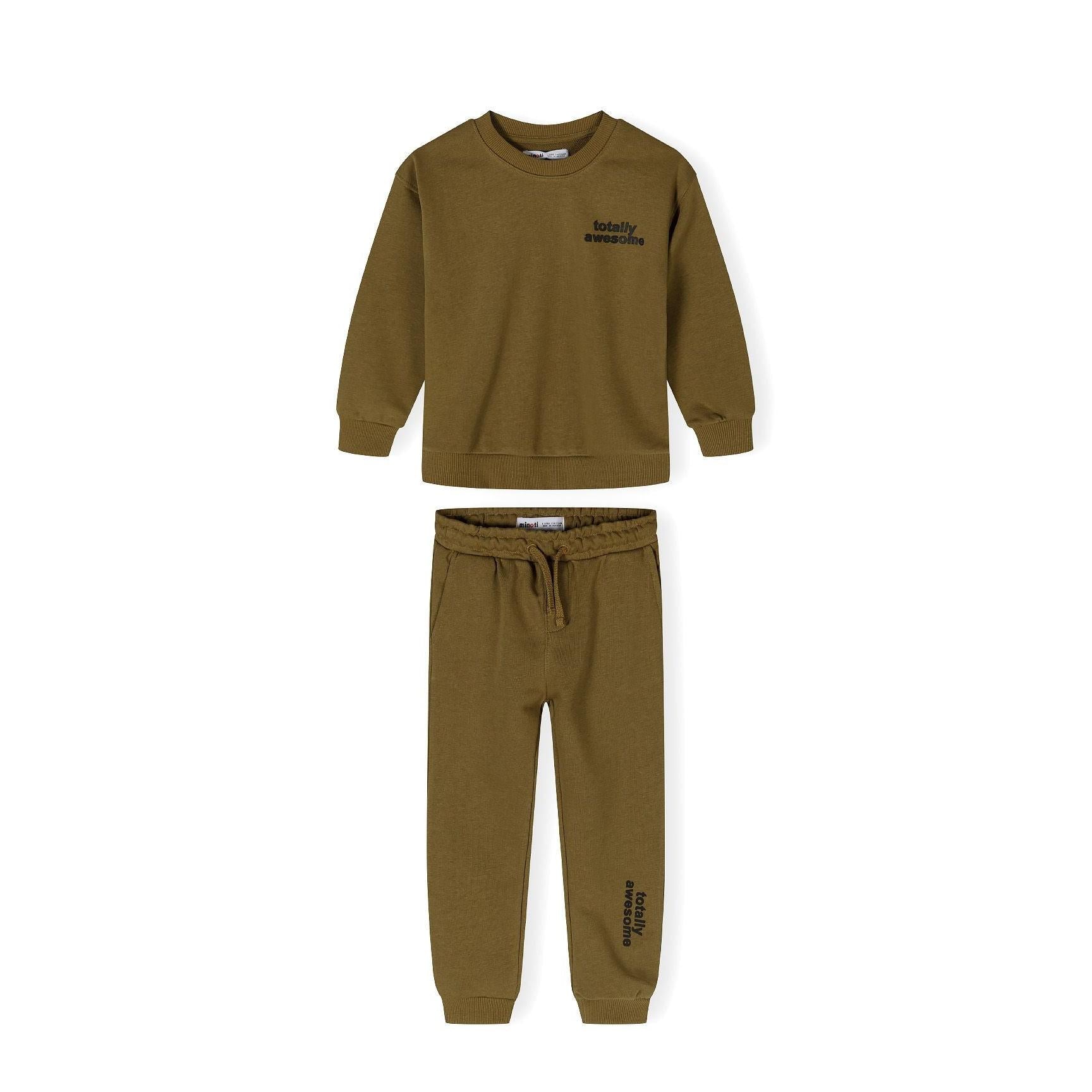Een jongenskledingset bestaande uit een bruin sweatshirt met ronde hals en bijpassende joggers, ontworpen voor dagelijks gebruik. Het sweatshirt heeft een geribde ronde halslijn met elastische manchetten en zoom, wat zorgt voor een comfortabele en flexibele pasvorm die actief bewegen mogelijk maakt. De joggers zijn voorzien van een elastische tailleband met trekkoorden voor een aangepaste pasvorm, naast zijzakken die handig opbergruimte bieden. Elastische pijpboorden zorgen ervoor dat de joggers tijdens activiteiten goed op hun plaats blijven zitten. Gemaakt van lichtgewicht katoenen fleece, combineert de set ademend vermogen met zachtheid, wat comfort biedt dat geschikt is voor casual uitstapjes of licht spel. Het ontwerp richt zich op functionaliteit, ondersteunt bewegingsvrijheid en garandeert duurzaamheid bij regelmatig gebruik zonder in te leveren op comfort.
