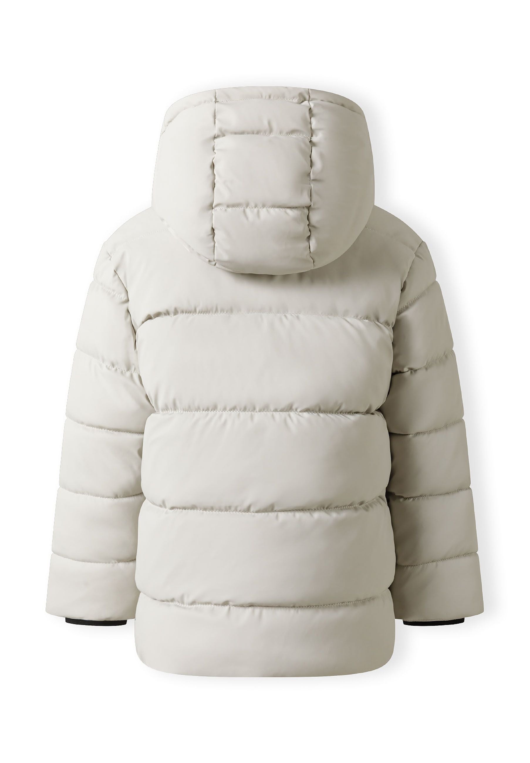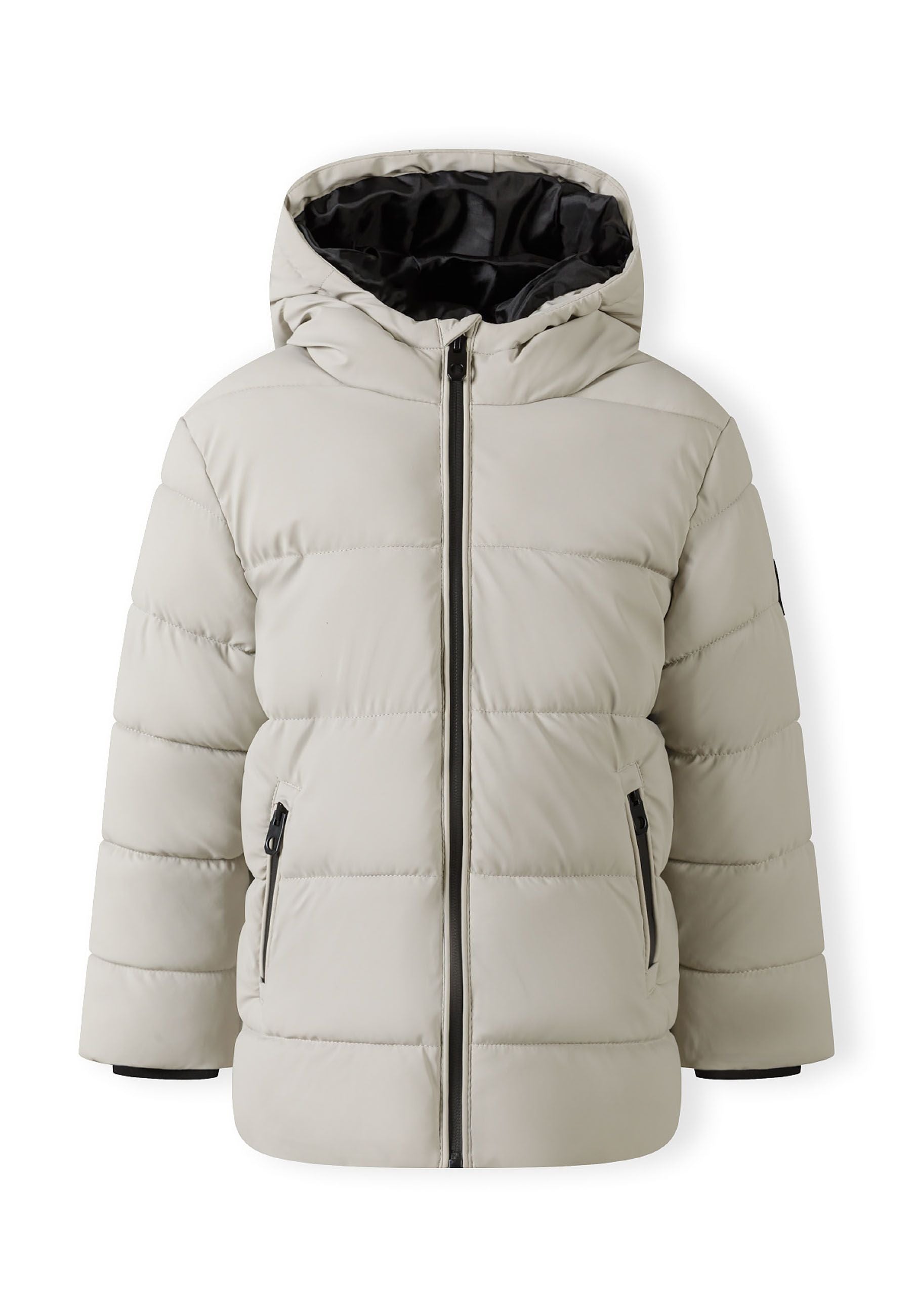 Chłopięca kurtka z ekoskóry beżowa pikowana z kapturem, zamkiem i kieszeniami