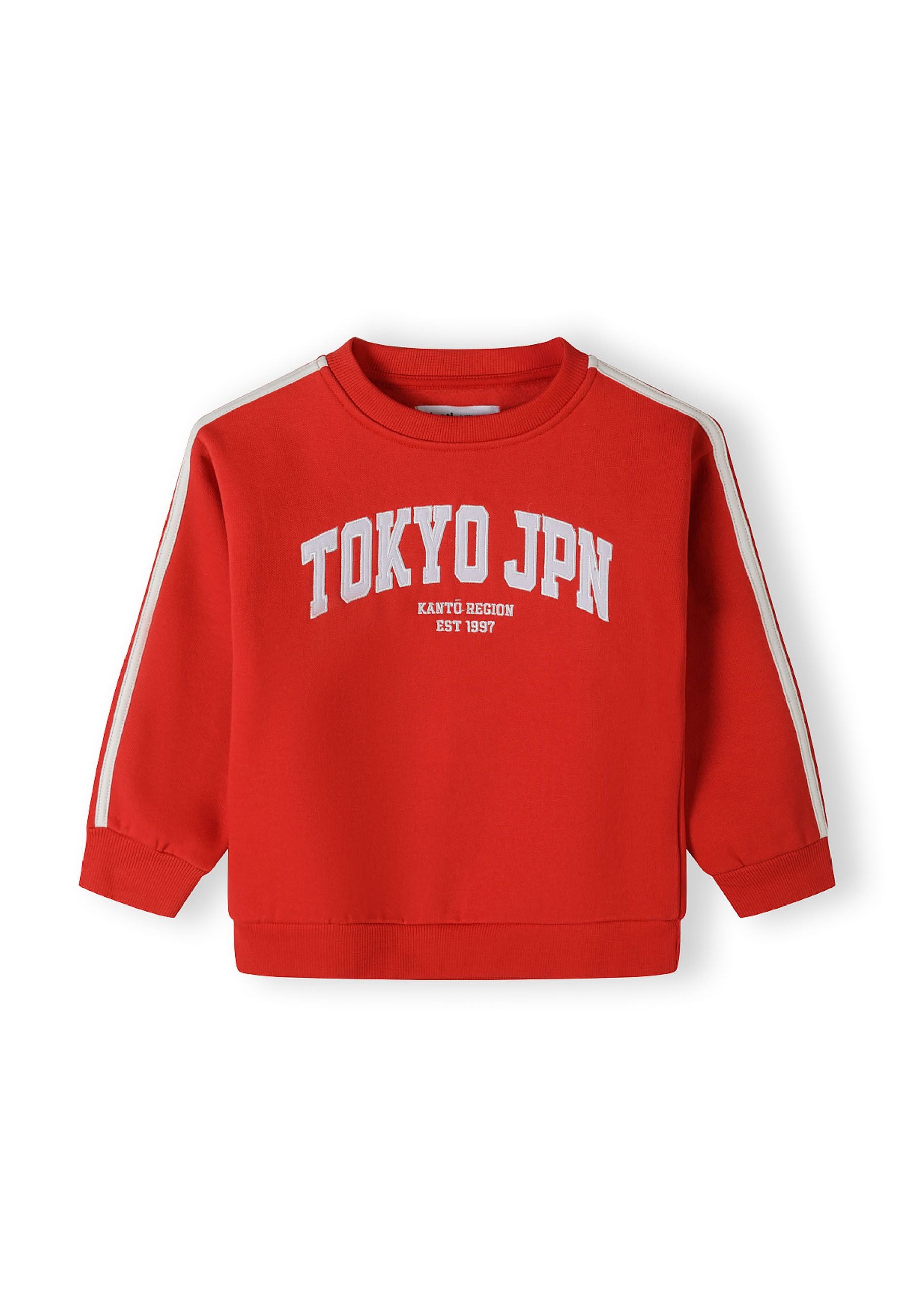 Dwuczęściowy zestaw dla chłopców zawiera bluzę i dopasowane spodnie dresowe do codziennego noszenia. Bluza ma wyraźne haftowane napisy „tokyo jpn” na piersi oraz ściągacze przy rękawach i u dołu, które zapewniają pewne dopasowanie. Kontrastowe sportowe lampasy biegną wzdłuż całej długości rękawów, dodając stylu. Spodnie dresowe mają dopasowane lampasy po bokach, praktyczne kieszenie na niezbędne drobiazgi oraz regulowany pas dla indywidualnego dopasowania. Zestaw jest głównie czerwony i wykonany z miękkiego, przypominającego polar materiału, który zapewnia ciepło w chłodniejsze dni. Komfortowy krój daje swobodę ruchów, odpowiednią dla aktywnego użytkowania. Zharmonizowany design łączy styl i praktyczność na co dzień.