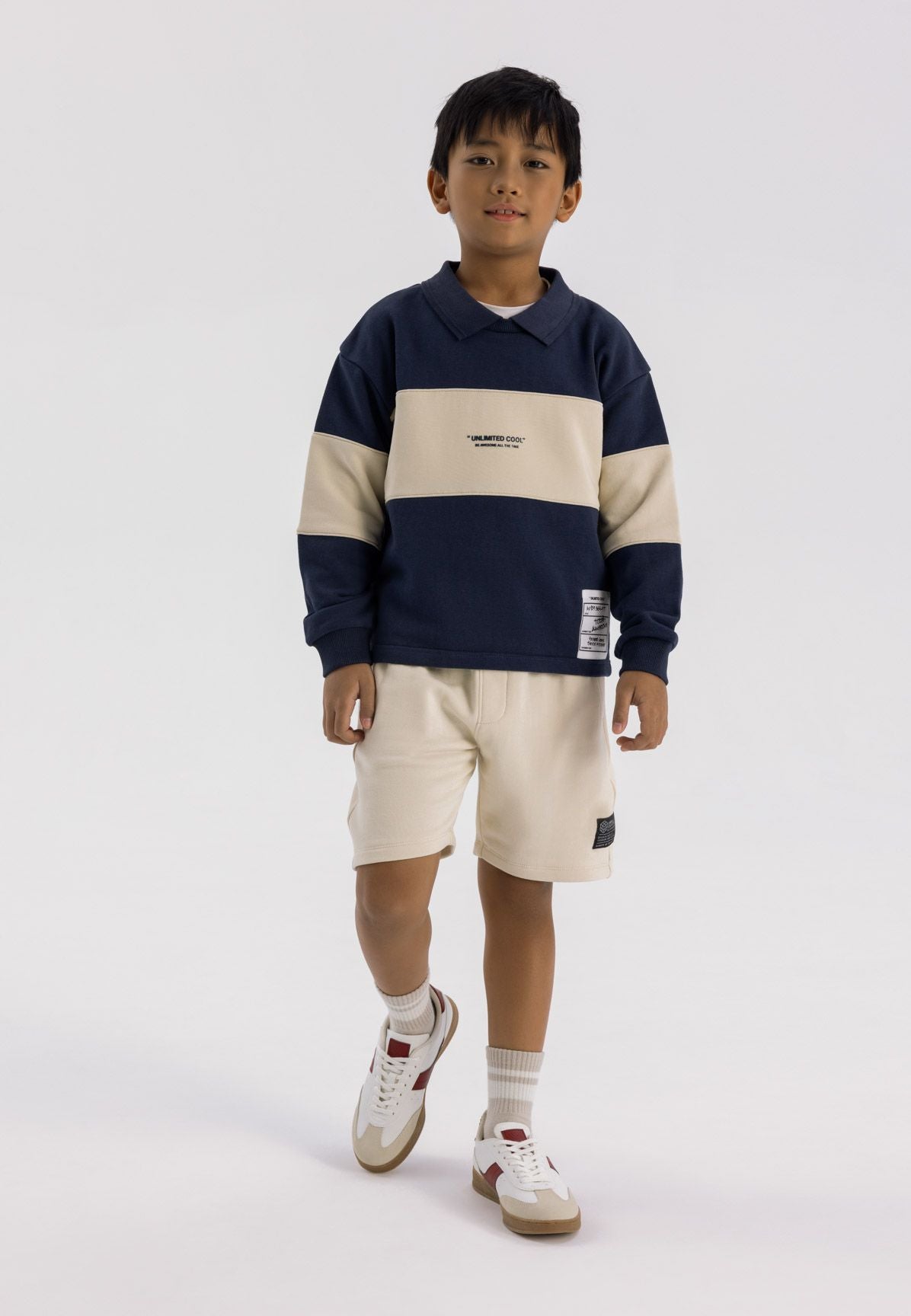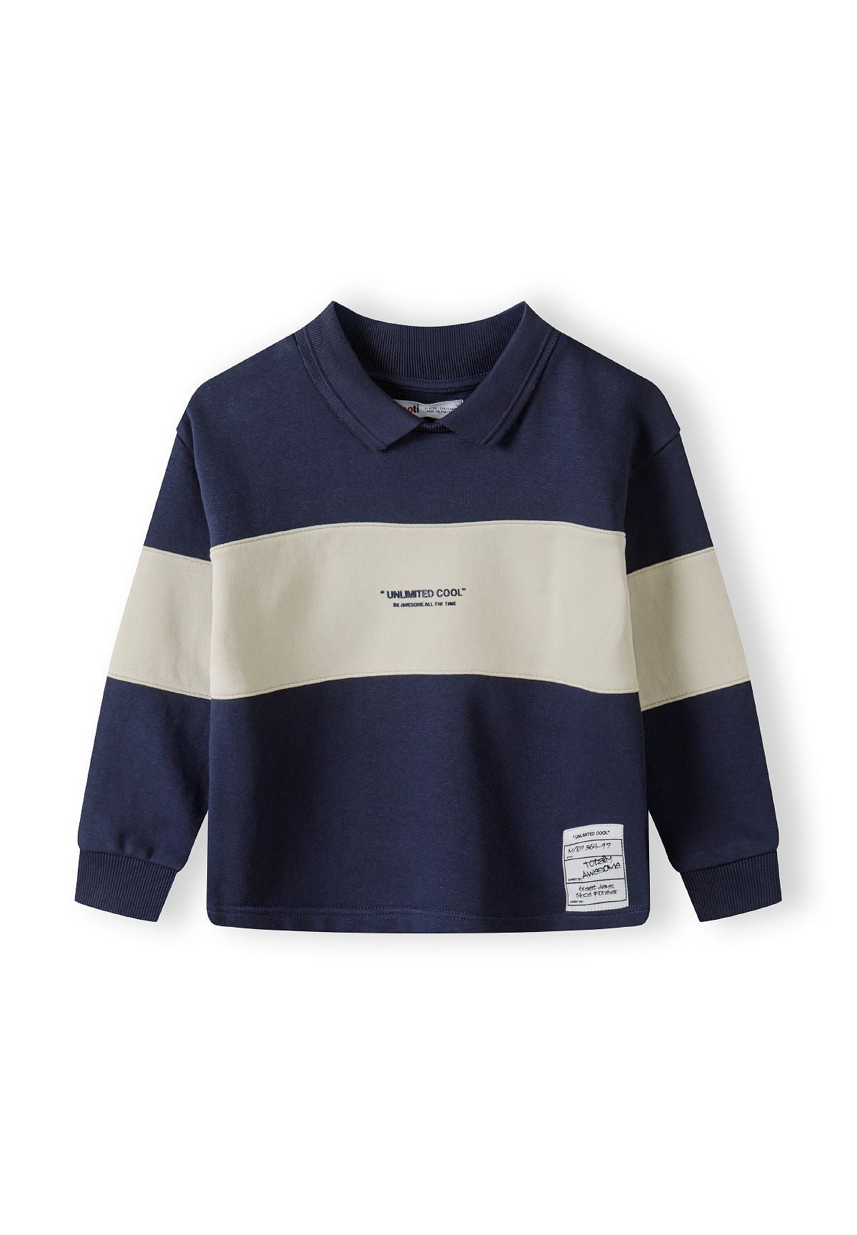 Chłopięcy polarowy sweter z kołnierzykiem polo, kontrastowe panele, granatowy, 3-14 lat