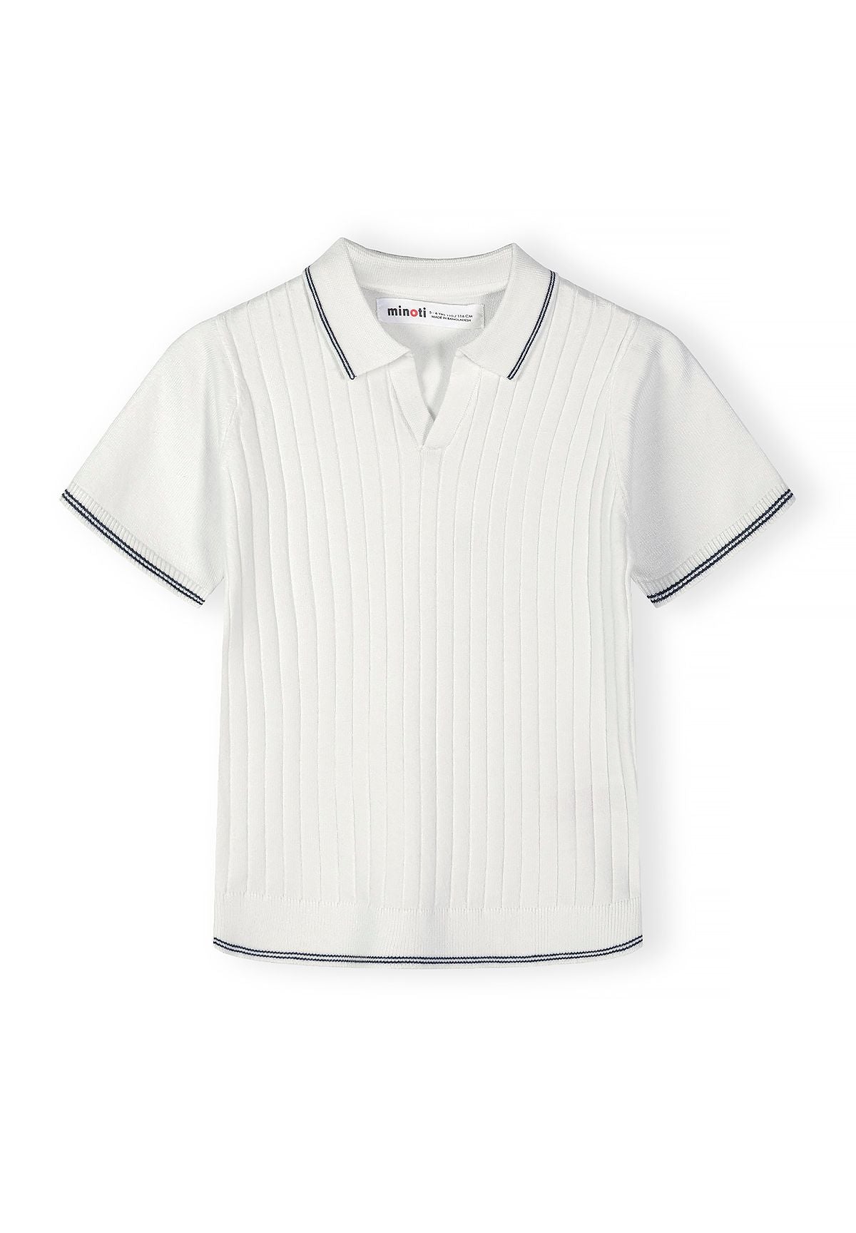 Chłopięca dzianinowa koszulka polo w paski w kolorze ecru 3-15 lat