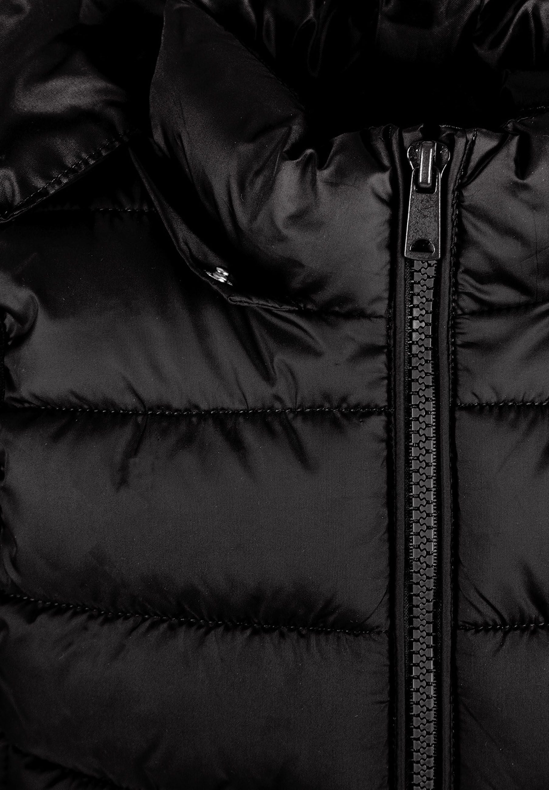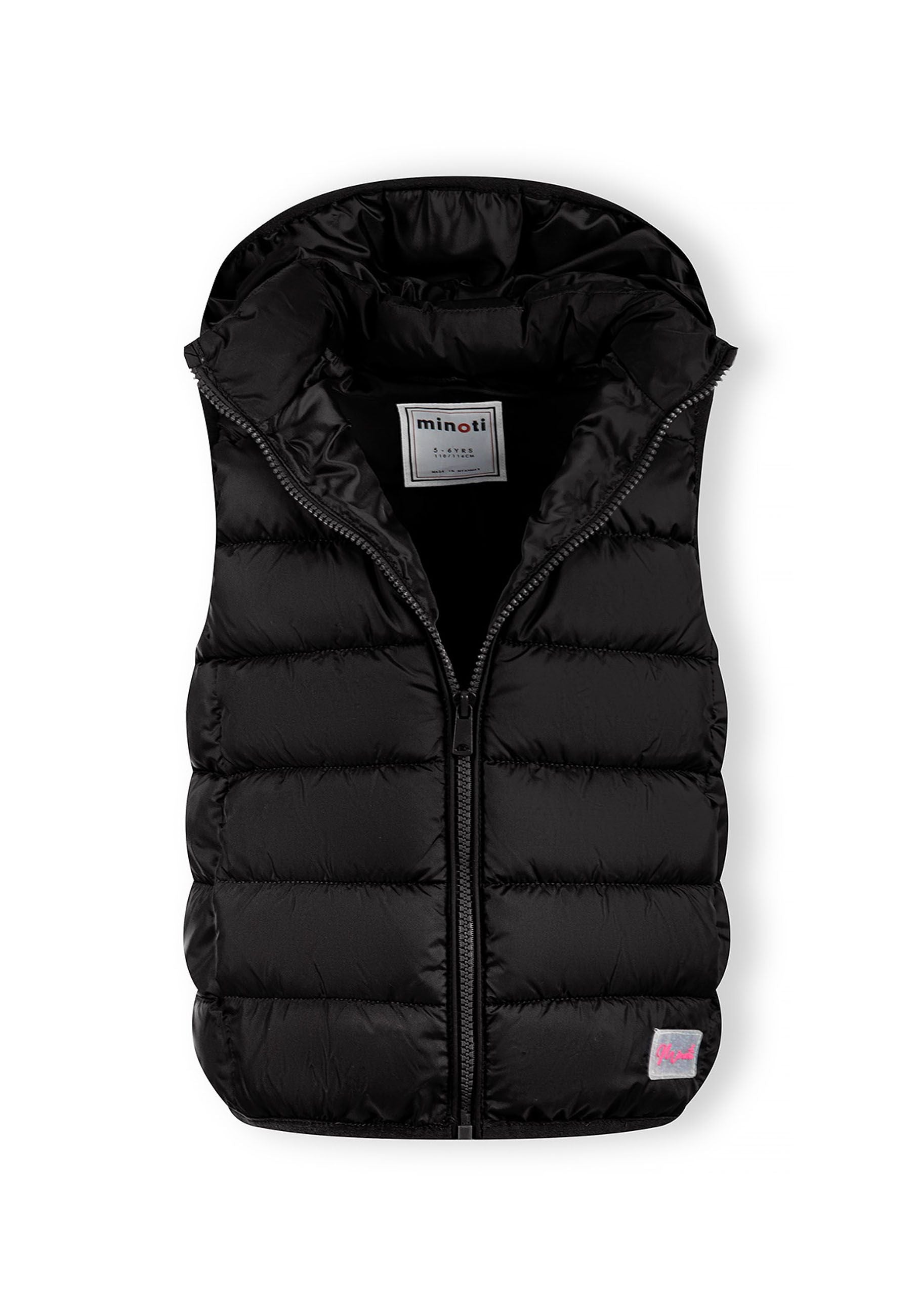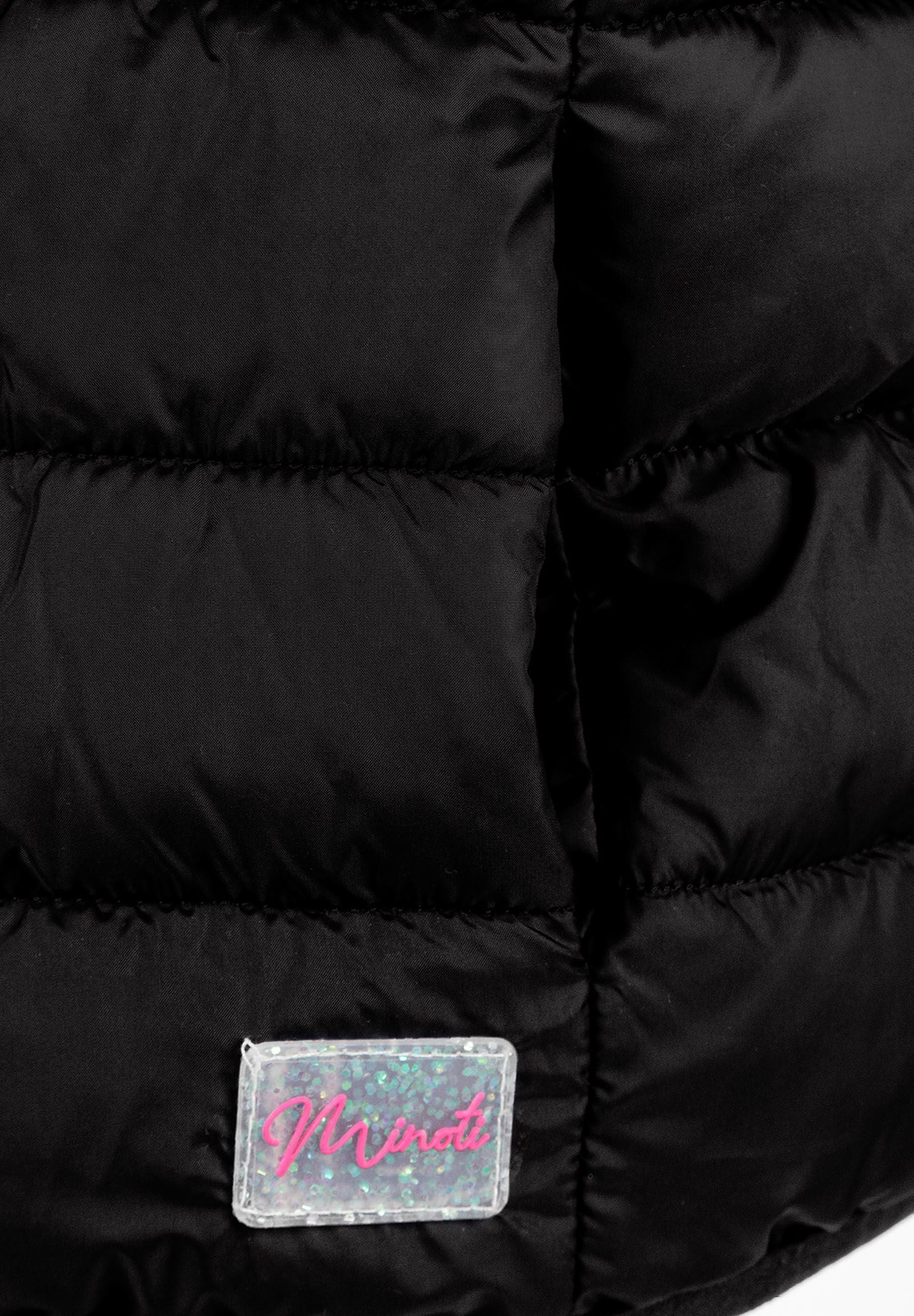 Dziewczęca czarna pikowana kamizelka z kapturem