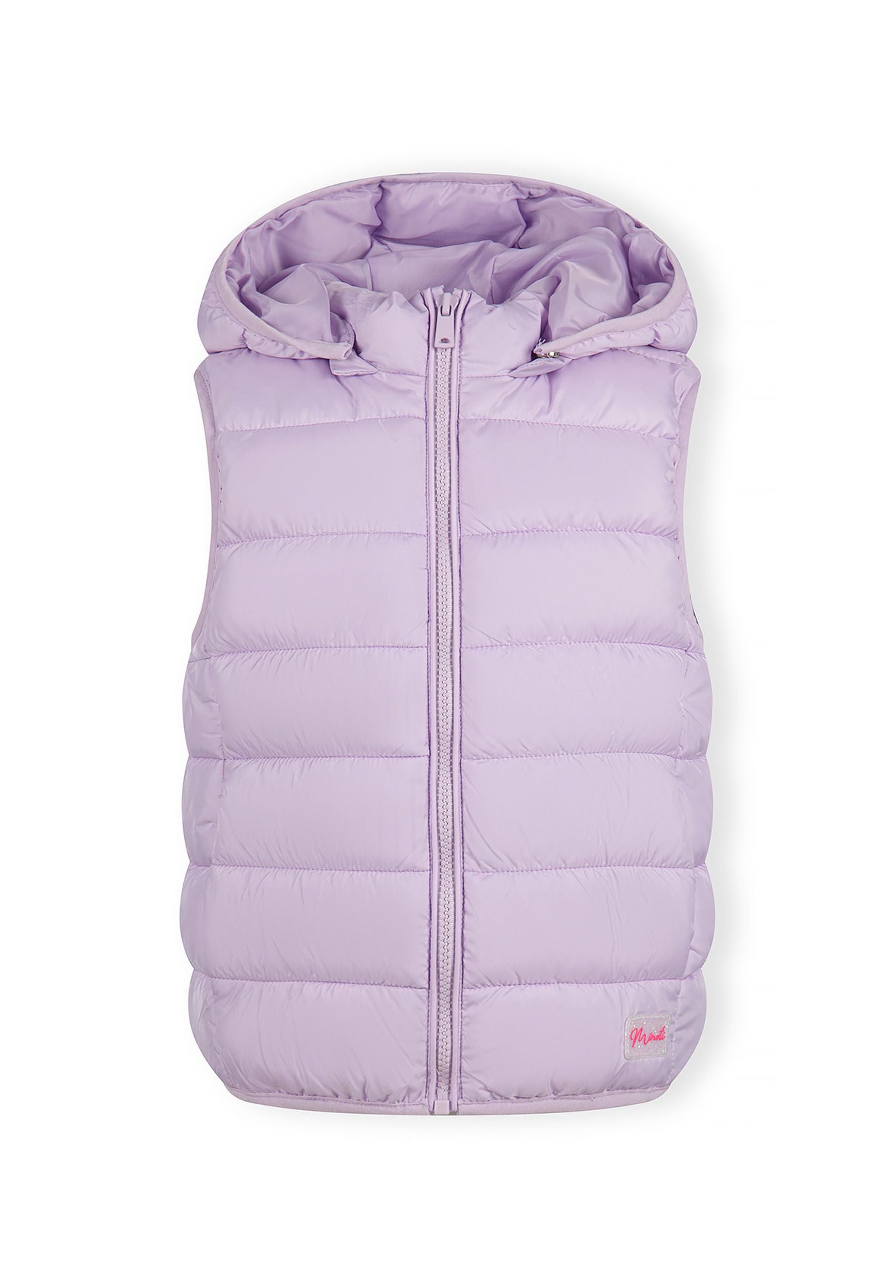 Dziewczęca lawendowa pikowana kamizelka z kapturem
