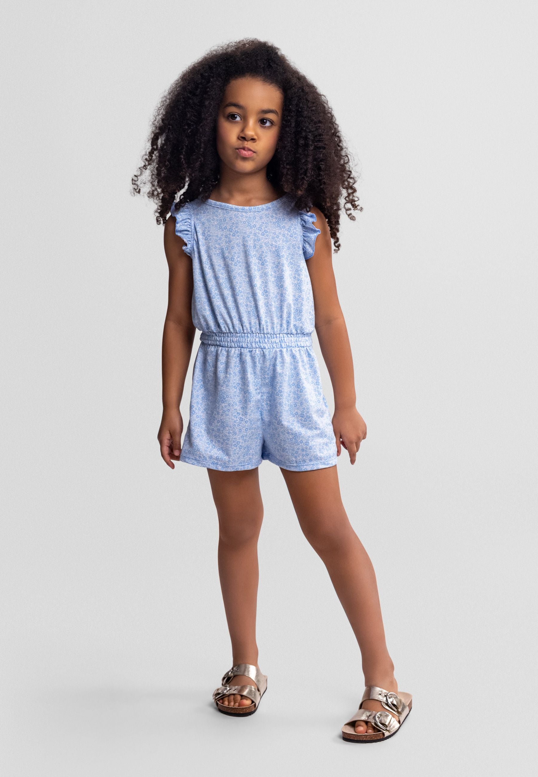 Kombinezon dziewczęcy z krótkim rękawem w niebieskie kwiaty 3-15 lat