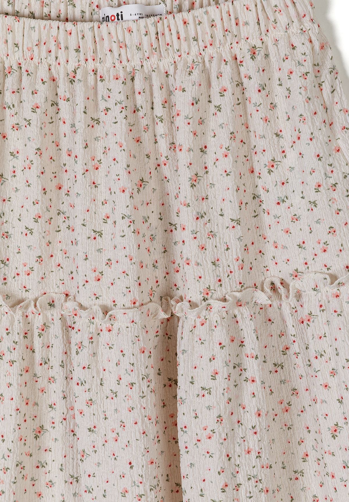 Dziewczęca kremowa długa spódnica w kwiaty z elastycznym pasem 3-15 lat