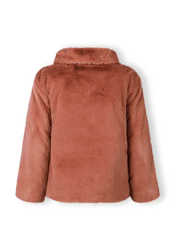 Kurtka ze sztucznego futerka z lekkim wypełnieniem i miękką podszewką. Okrągły kołnierzyk typu „bébé” dodaje uroku i otula szyję. Suwak na całej długości ułatwia zakładanie. Dwie dolne kieszenie zapewniają wygodę i praktyczność. Miękka w dotyku, ciepła i funkcjonalna – idealna na przejściowe dni.