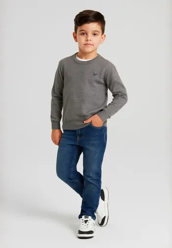Klasyczny sweter z dzianiny to ponadczasowa propozycja na chłodniejsze dni. Wykonany z miękkiej przędzy z domieszką wiskozy, ma prążkowane wykończenia i okrągły dekolt zapewniający dopasowanie i estetyczny wygląd. Haftowane logo na piersi dodaje wyrafinowanego wykończenia, a regularny krój zapewnia wygodę. Idealny jako warstwa przejściowa lub samodzielny element do swobodnych stylizacji.