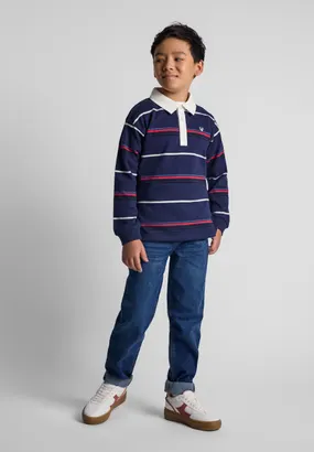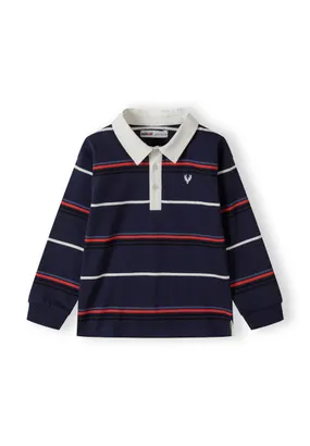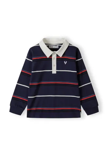 Bluzka z długim rękawem w stylu rugby to połączenie wygody i stylu. Tkany kołnierzyk, zapięcie na guziki i haft na piersi tworzą klasyczną całość. Wyraziste paski nadają jej sportowego charakteru. Ściągacze przy rękawach zwiększają komfort. Świetna jako codzienna bluzka lub do warstwowych stylizacji na chłodniejsze dni.