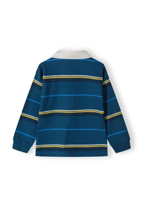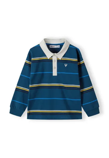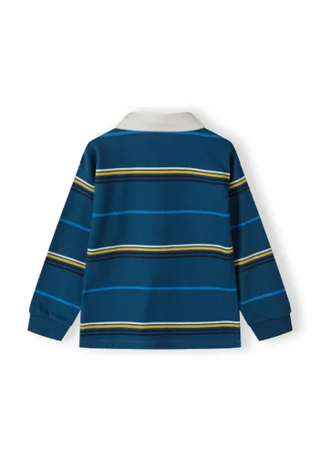 Bluzka z długim rękawem w stylu rugby to połączenie wygody i stylu. Tkany kołnierzyk, zapięcie na guziki i haft na piersi tworzą klasyczną całość. Wyraziste paski nadają jej sportowego charakteru. Ściągacze przy rękawach zwiększają komfort. Świetna jako codzienna bluzka lub do warstwowych stylizacji na chłodniejsze dni.